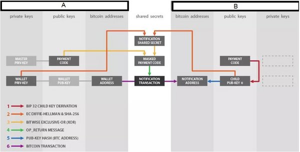 uniquely valid for each pair of users. The extended public key hidden in PayNymID, combined with the secret code unique to each pair of users, prevents third parties from tracking users' public keys. Payments are not sent directly to the.