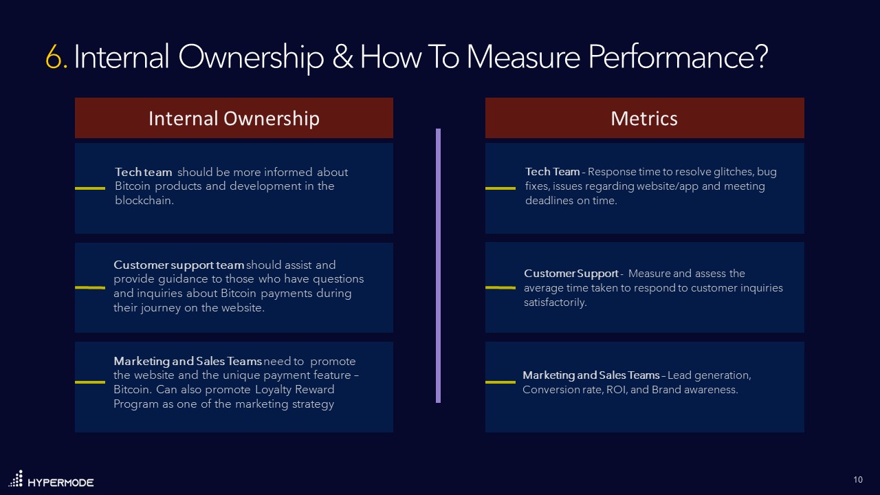 To avail the opportunities, there are some internal ownership that needs to be taken and the metrics against those areas to measure their performance.