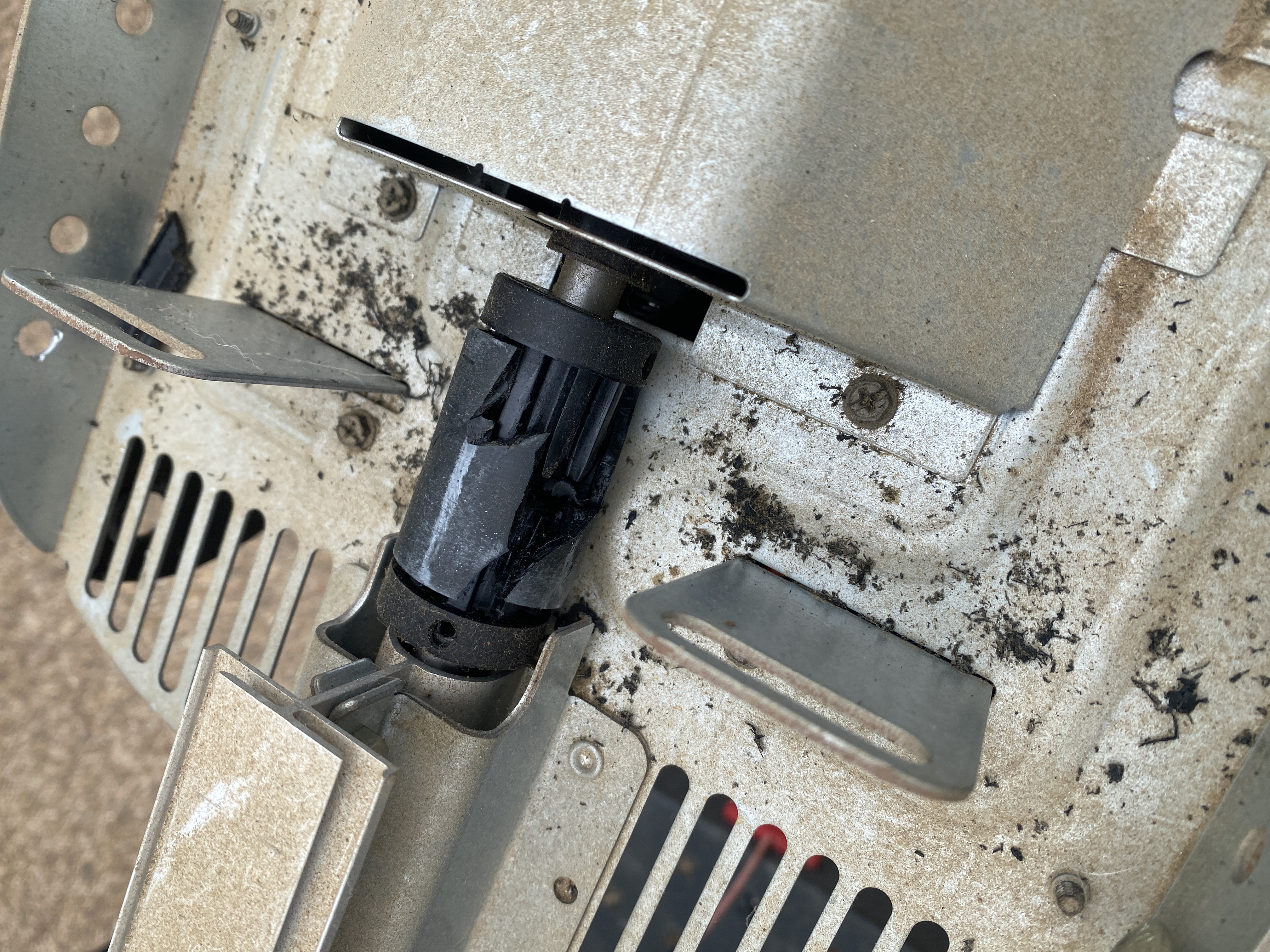 If the plastic coupler is cracked and beginning to fail, the garage door will start to sound clunky and may jerk/skip during travel.