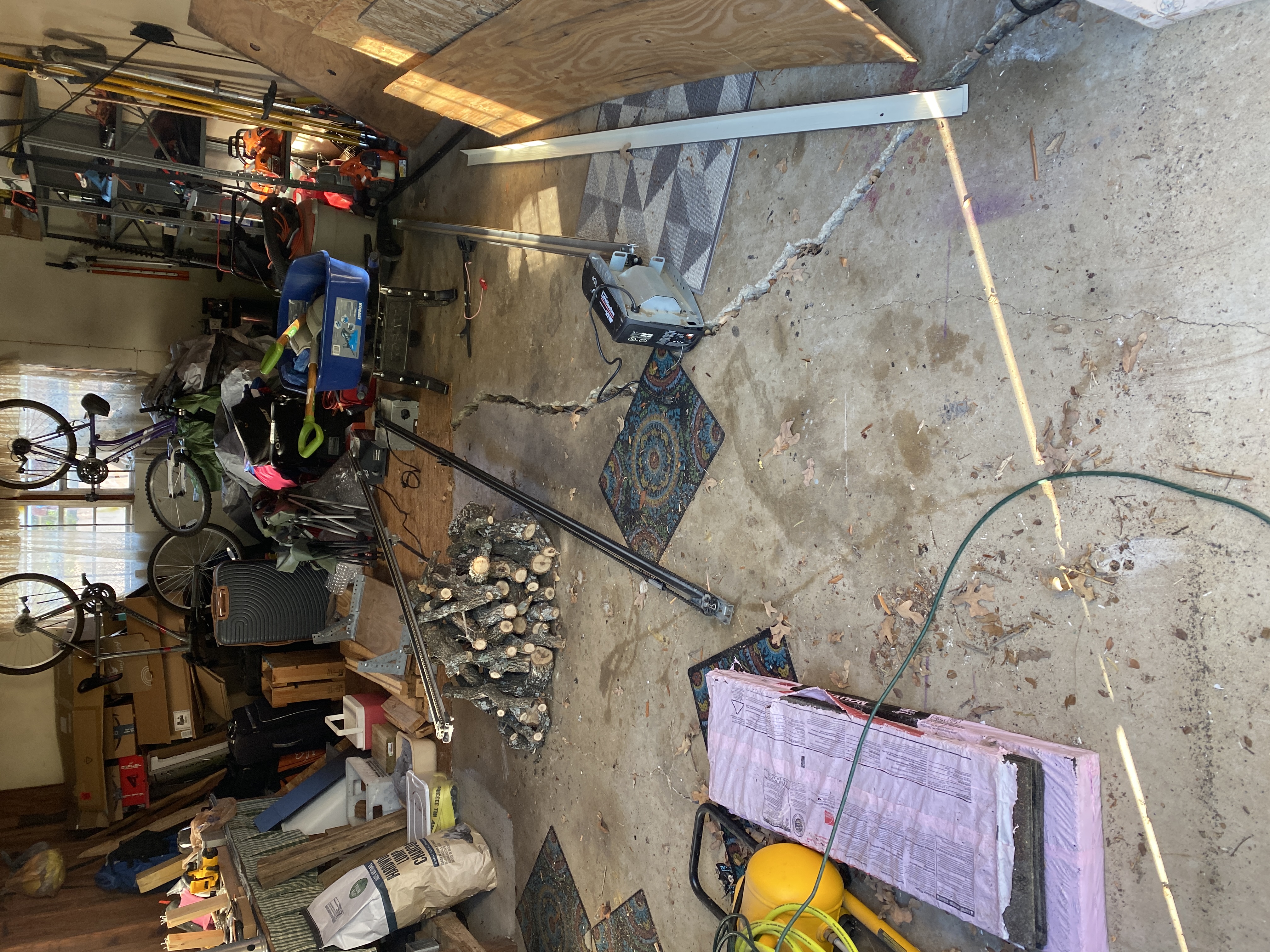 This house is pretty old, but a they turned the single car garage into a bedroom. There is evidence that our detached garage (the "shop") had an opening wide enough for a car once, but they closed it off and added swing doors.