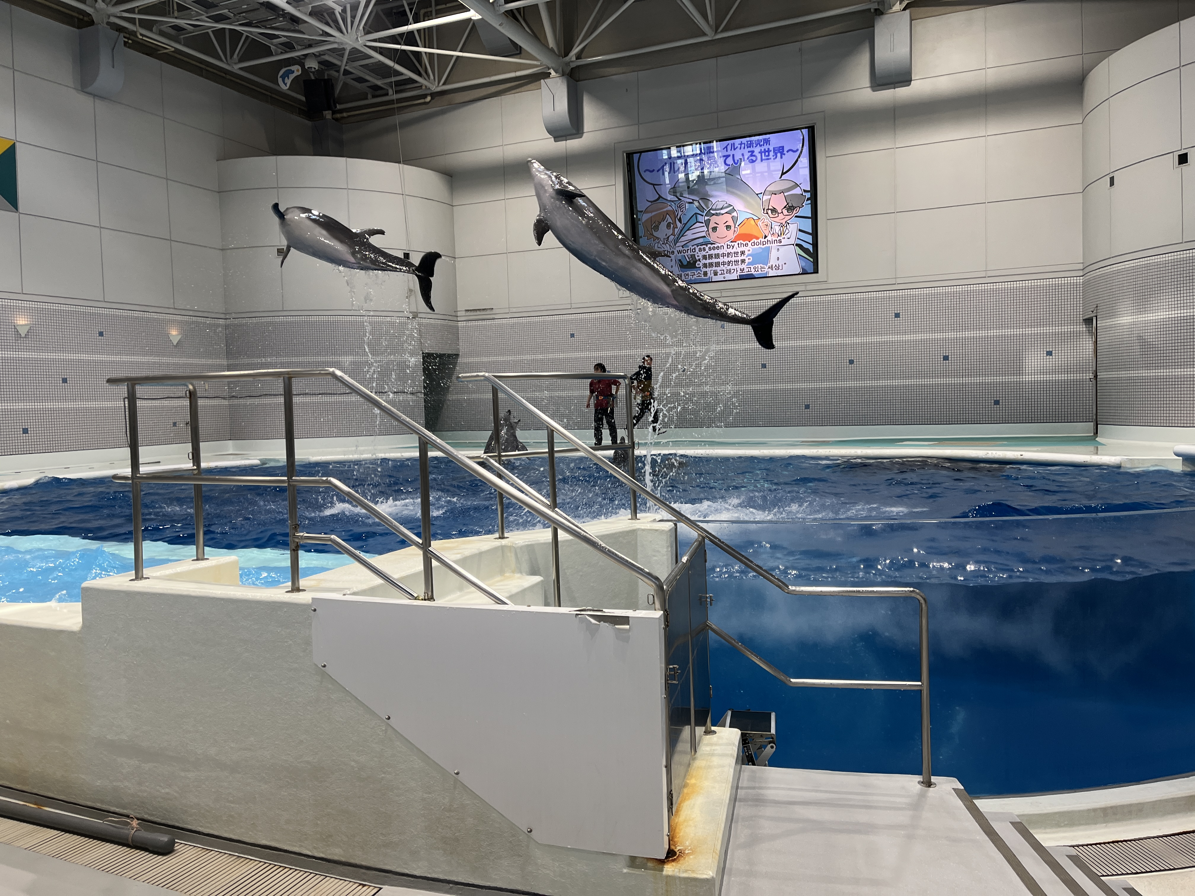 The highlight of our visit was the dolphin show. Seeing five dolphins leap in the air in unison took my breath away. It was a great demonstration of their agility.