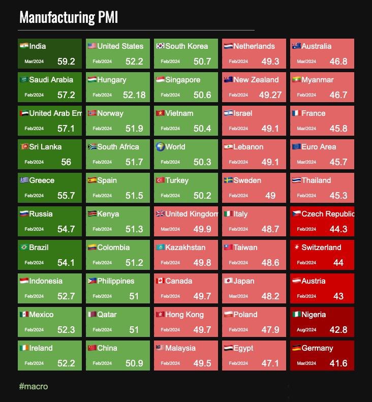 This is the state of play in global industry at the moment. We see a clear polarization between the Eurozone, which is deep in recession, and Asia, with India leading the way in dynamic growth.