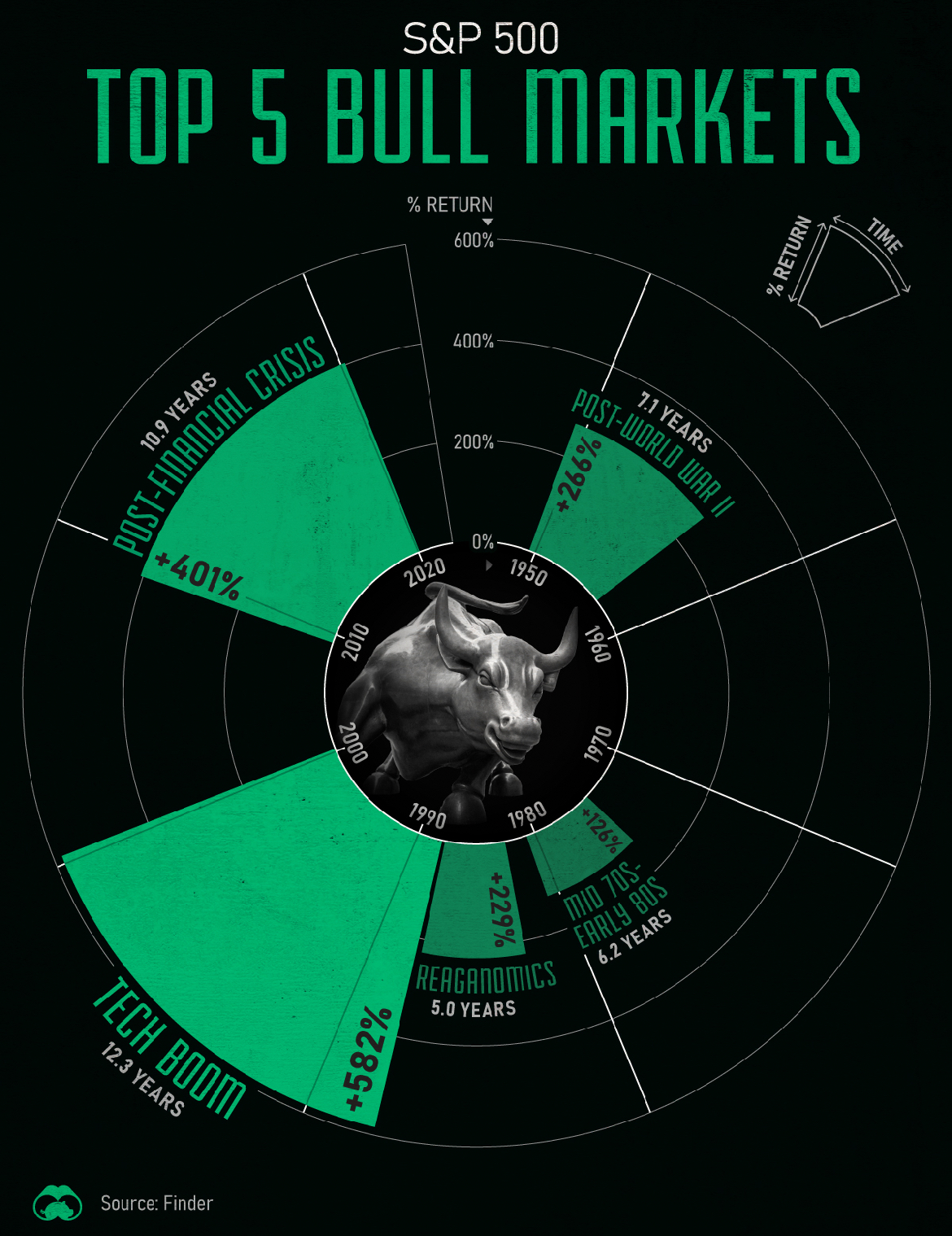 S&P 500: Top 5 Bull Markets Visualization