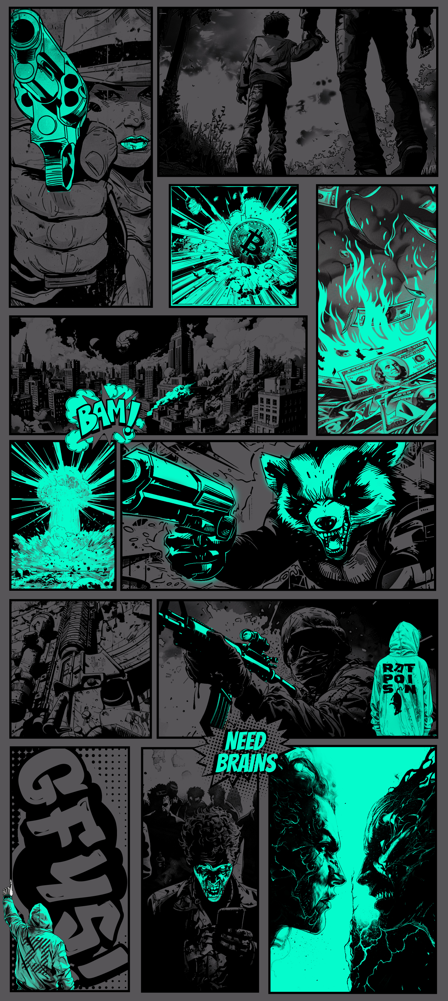 I am working on a new art print where various aspects emerge of transitioning from a dark, gloomy fiat system to a Bitcoin system, highlighting important aspects for me such as individualism, family self-sufficiency, to name a few. This is depicted in a comic book style.