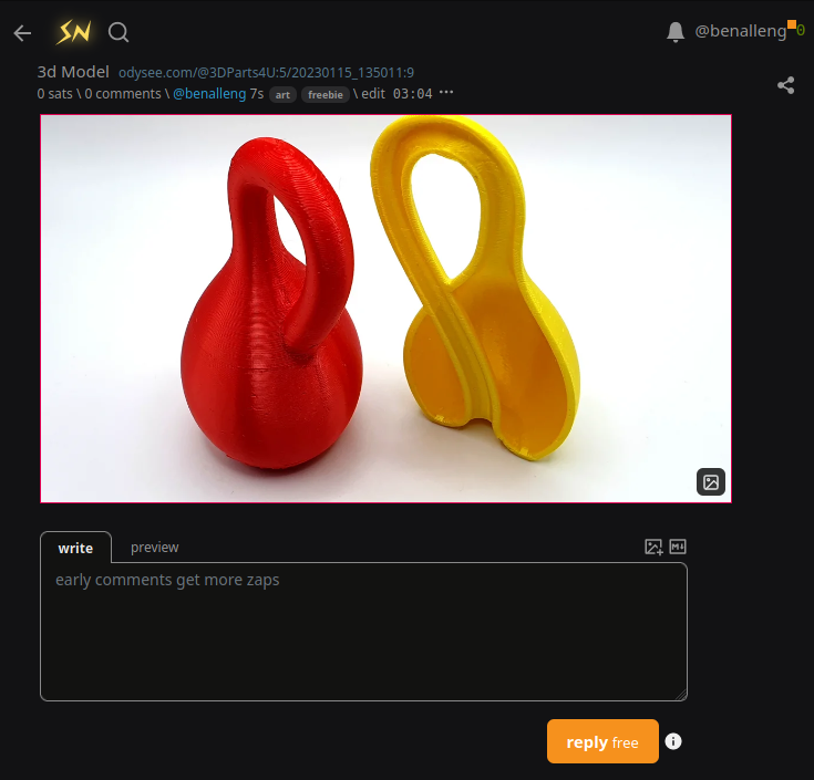 As an aside it took me a surprisingly long time to find a 3d-model on Odysee that wasn't spicy, it seems this klein bottle is the only thing there that can't be used as a weapon