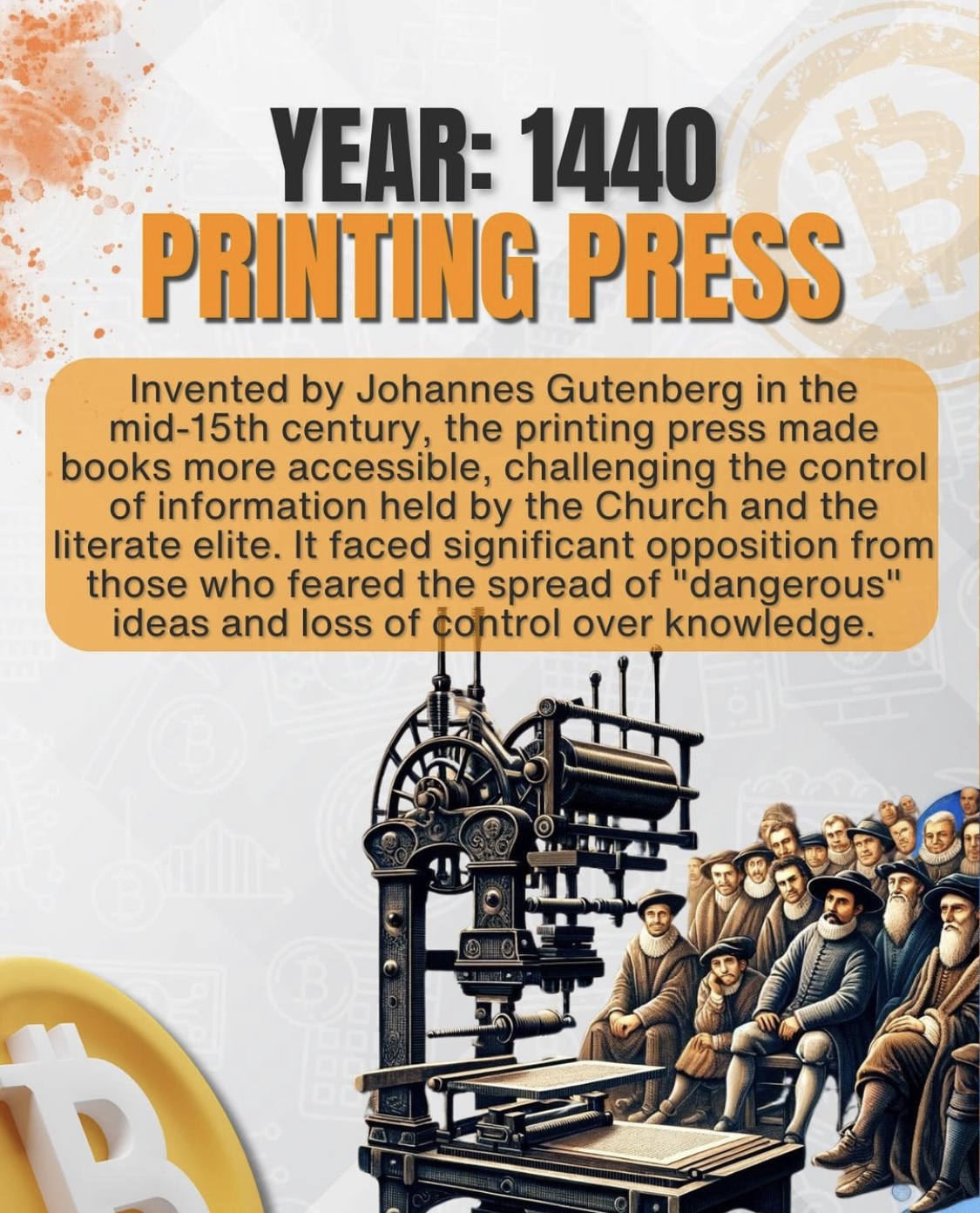 The invention of the printing press in the 15th century revolutionized the way information was shared and challenged the control of information held by the Church the literary elite.