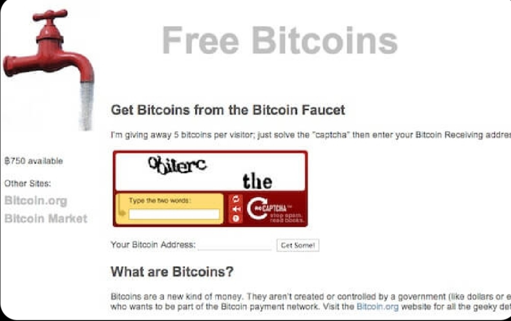 In 2010, this site gave 5 Bitcoin to each of its visitors for solving a captcha