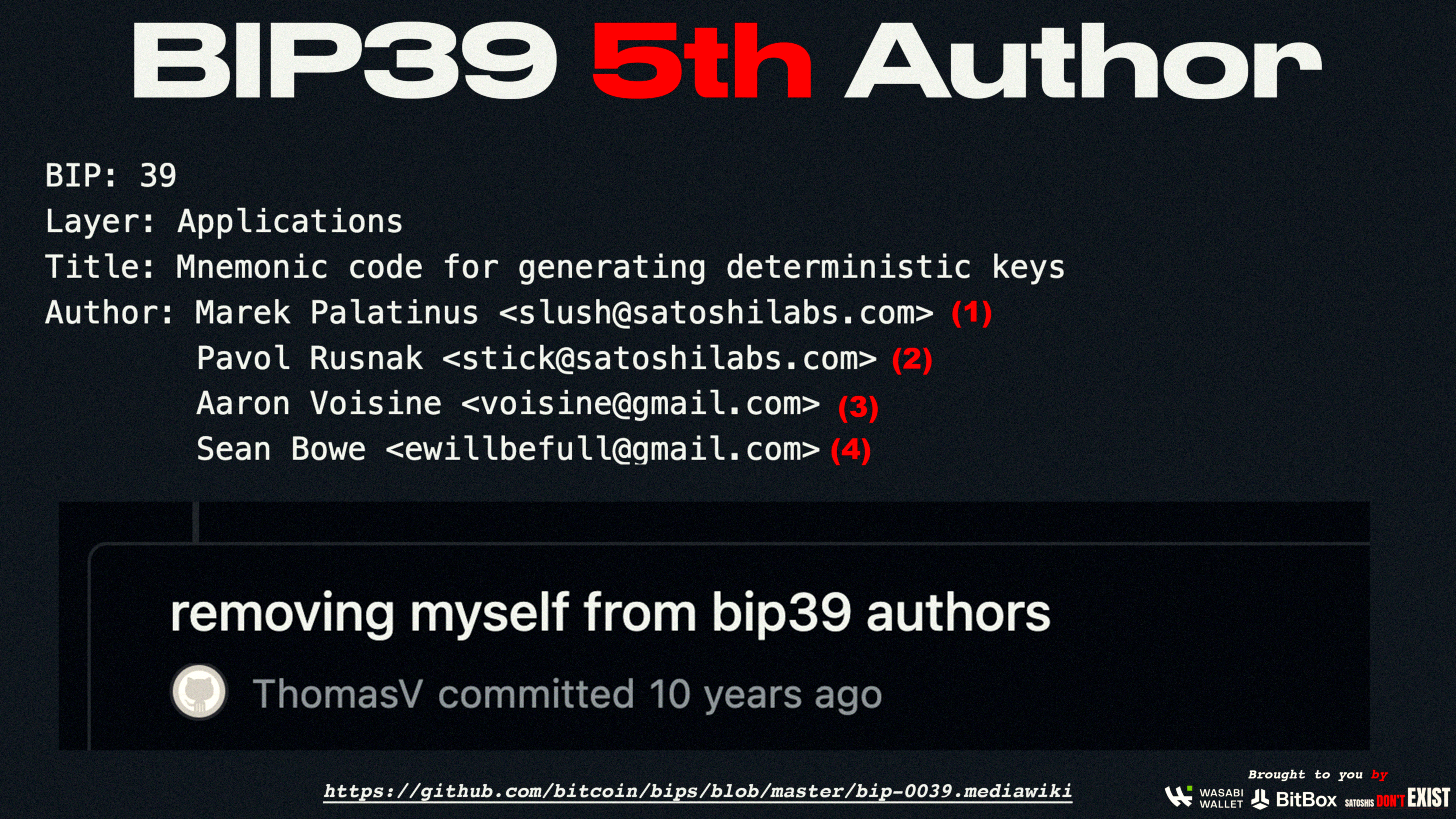 Did you know BIP39 had a 5th author who removed himself?