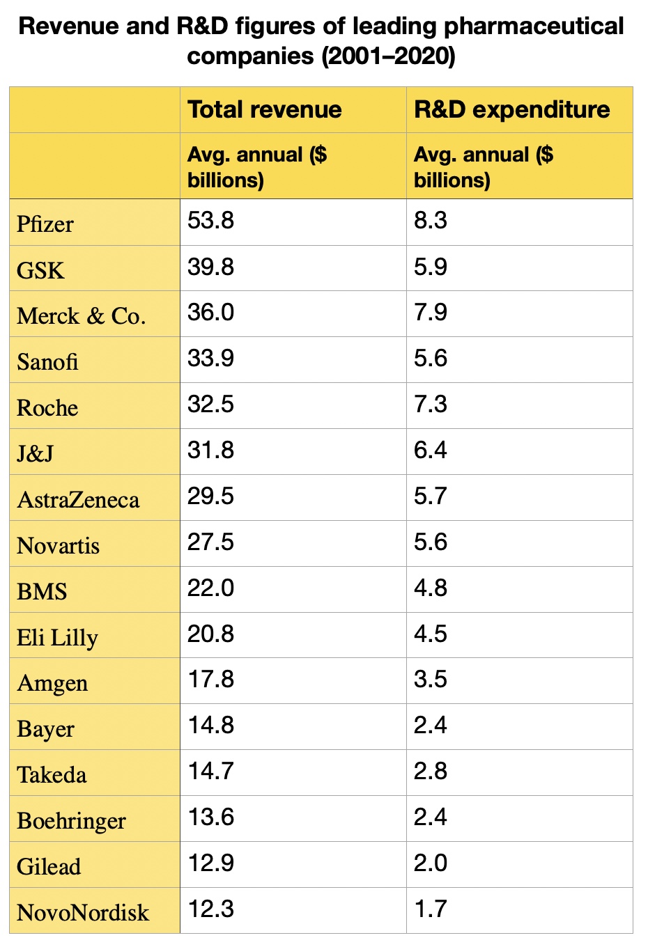 This is a paper from Oct 2023 analyzing R&D productivity of 16 big pharma companies over 20 years (2001-2020, so still pre-covid). It’s interesting reading, amazing numbers.