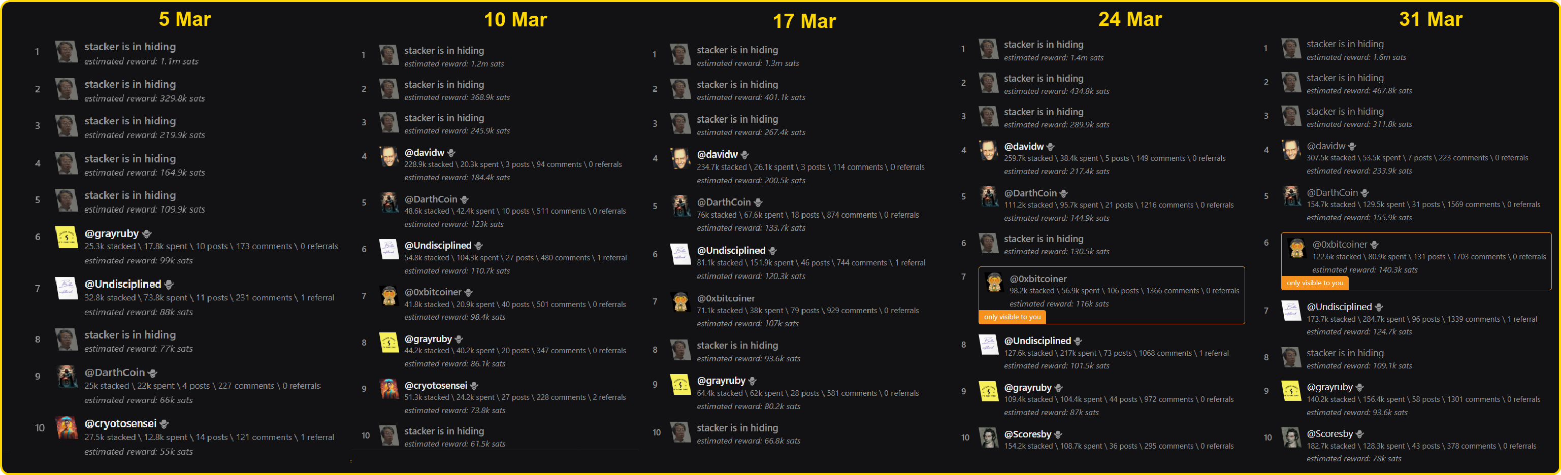 - @DarthCoin is in a close battle with @davidw for 4th place;