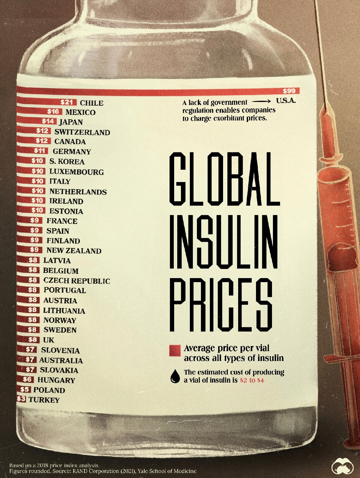 Some data including the US price is taken from this article, so some prices in the chart are from 2018. Insulin is even more expensive these days based on more recent data