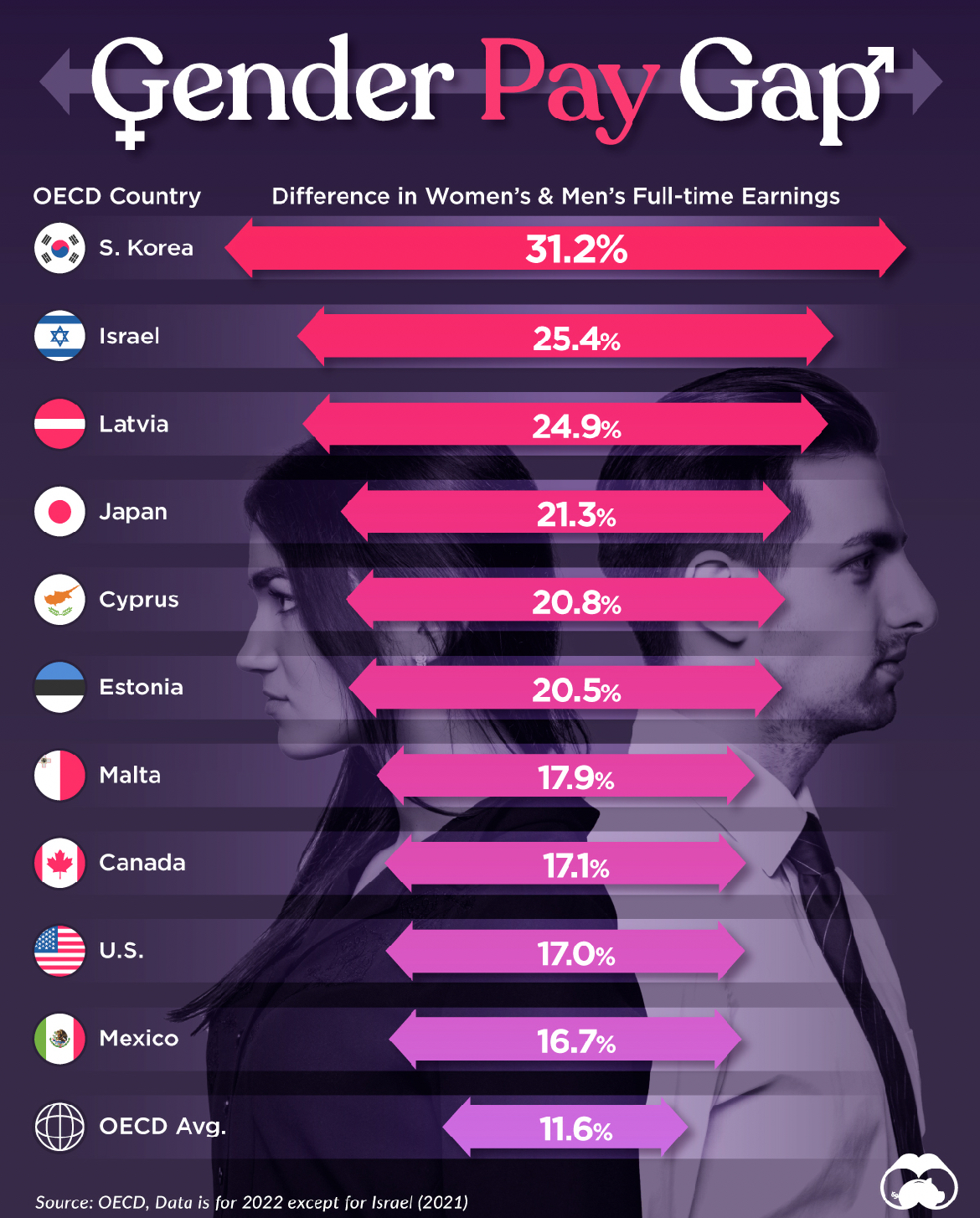 "Full time" is an incredibly misleading category. Amongst full-time workers, men work many more hours than women. Whenever this is studied (in America) and hours worked are actually accounted for the wage-gap all but disappears.