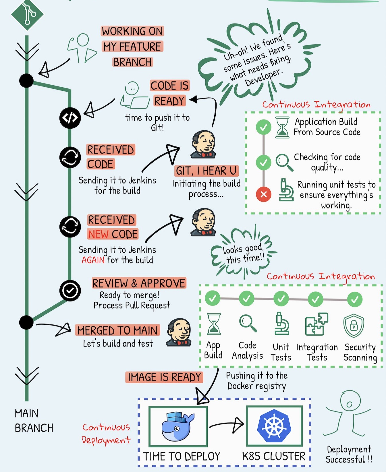 𝗖𝗼𝗻𝘁𝗶𝗻𝘂𝗼𝘂𝘀 𝗜𝗻𝘁𝗲𝗴𝗿𝗮𝘁𝗶𝗼𝗻 (𝗖𝗜) is a foundational practice in DevOps where developers frequently merge code changes into the main branch, often multiple times a day. This process is complemented by automated testing to ensure new changes integrate seamlessly with existing code. The primary goal of CI is to find and address bugs quicker, improve software quality, and reduce the time required to validate and release updates