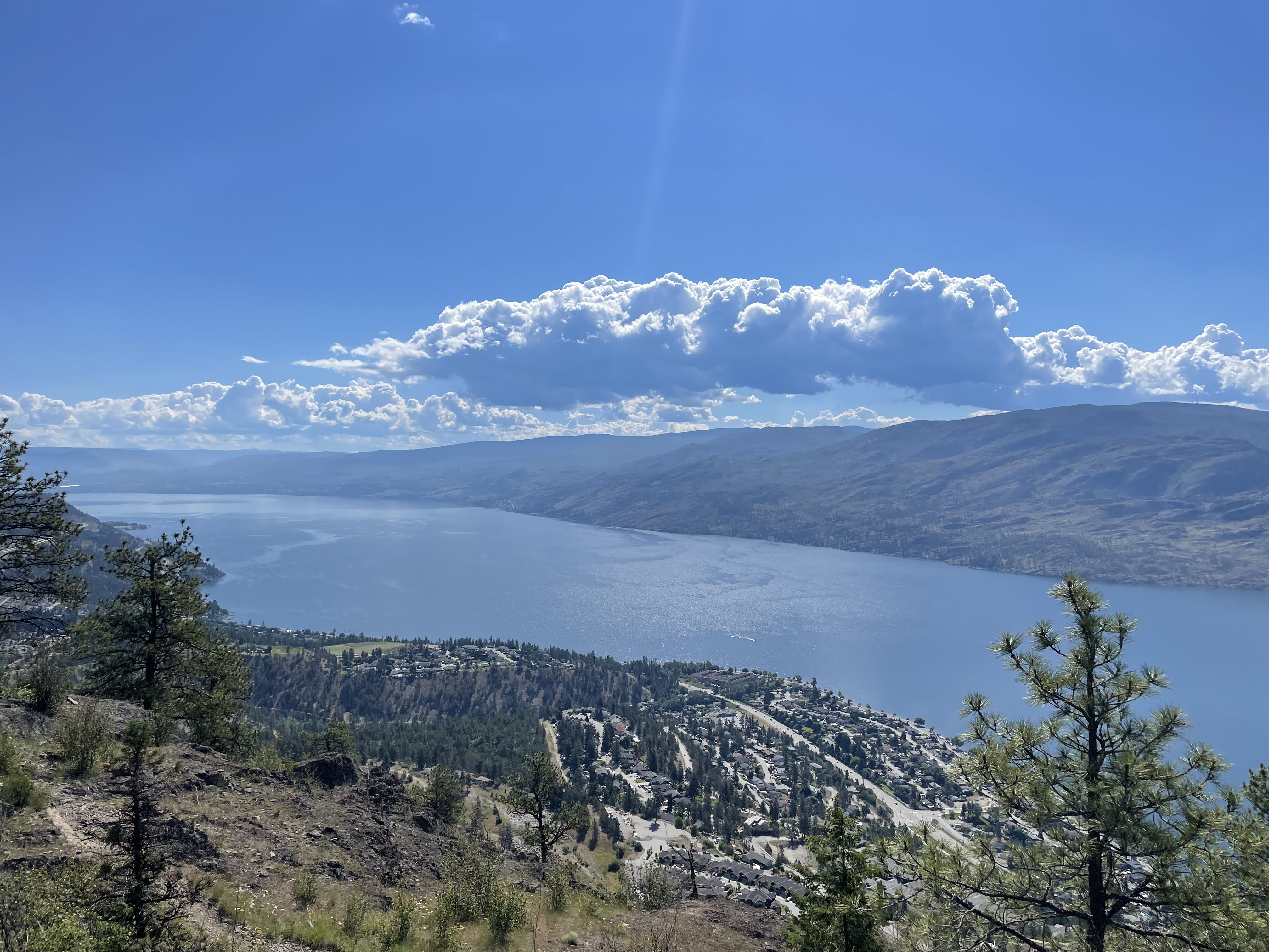 The viewpoint at the top shows beautiful views of Okanagan Lake, as well as the town of Peachland, BC, and part of the Okanagan Valley. There was also a Canadian flag at the viewpoint, which I found quite fitting because it was Canada day on the day of our hike.