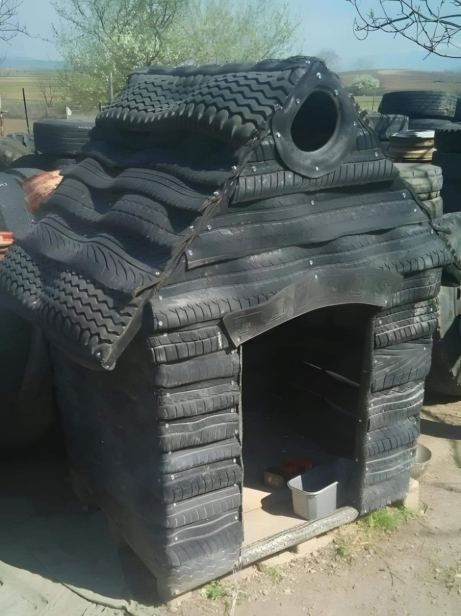 Dog house made from tires taken from the trash!
