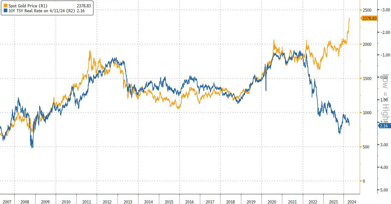The interest rate on safe government bonds is the opportunity cost of holding an asset like gold. Interest rates are the natural enemy of the precious metal - if they rise, investors dump gold and move into interest-bearing or cash flow-providing assets. For about two years now, this correlation has been diverging in the other direction. Obviously, gold investors are now accepting rising nominal interest rates because they are questioning the creditworthiness of so-called safe assets after the crash on the bond markets. The flooding of the markets with ever more government debt casts its shadow and allows safe haven assets such as Bitcoin and gold to continue to shine.