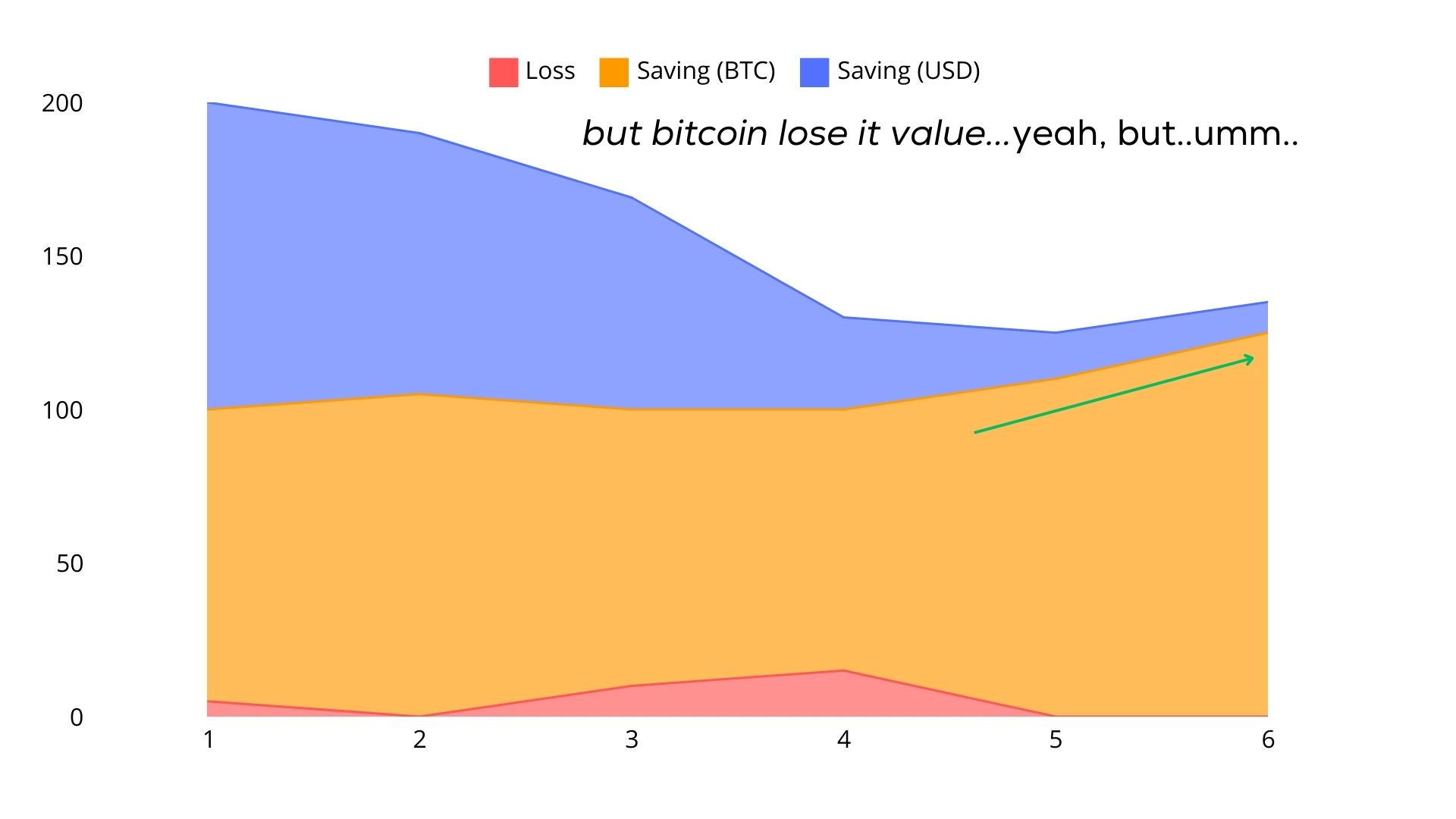 So, the usual talk with a nocoiner that was around a no-exit because he wouldn't conceive that USD is losing value, despite the fact he already knew how inflation works, that he's kind of...forced to do it. The alternative was to face devaluation. He couldn't understand...so I made this chart using imaginary value (but real shit, take a look the numbers) based in some outstanding articles Arthur Hayes wrote about the topic.