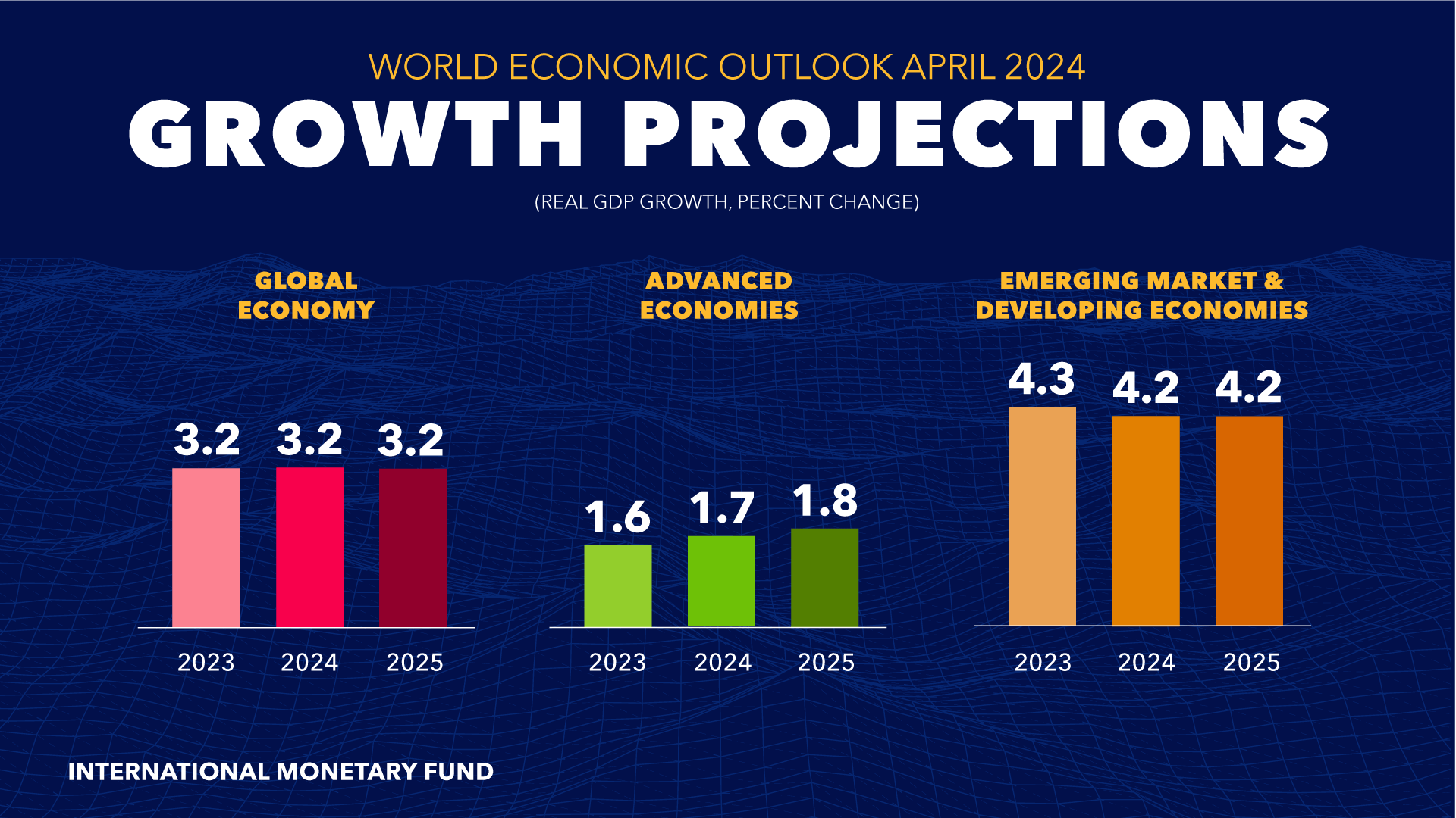In its latest World Economic Outlook, the International Monetary Fund (IMF) has kept its projections for global economic growth largely unchanged. However, it anticipates a slight moderation in global trade growth and a more restrained fiscal policy, which may counterbalance the easing monetary policies in advanced economies. The IMF forecasts a 3.2 percent increase in the global Gross Domestic Product (GDP) for 2024, up from its previous forecast of 3.1 percent in January. It maintains an unchanged growth expectation of 3.2 percent for 2025.
