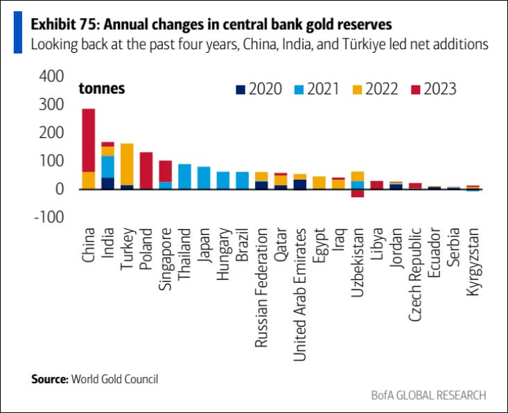 The bursting of the government bond bubble has led to negative equity on the balance sheets of many central banks that have monetized government debt in recent years. Losses in the billions are simply dismissed with the words: central banks can print their money. It's not that simple! To heal this damage, it makes sense to take hard assets onto the balance sheet and inflate them in the future. The gold hype, especially in Asia and in the so-called BRICS countries, can be explained primarily by this. It is a way out of fiat debt hell. If you take a closer look at central bank policy, two examples stand out in particular: China, which has made massive gold purchases, and Poland. This is surprising, as the EU member seems to have set itself apart from the other states. But still we do not know for sure what policy will look like under the new Polish government. Is someone here preparing for a crash of the eurozone? Poland can thus defend its own currency, the zloty, in the future. Incidentally, it is Italy that has the highest per capita gold holdings and its central bank.