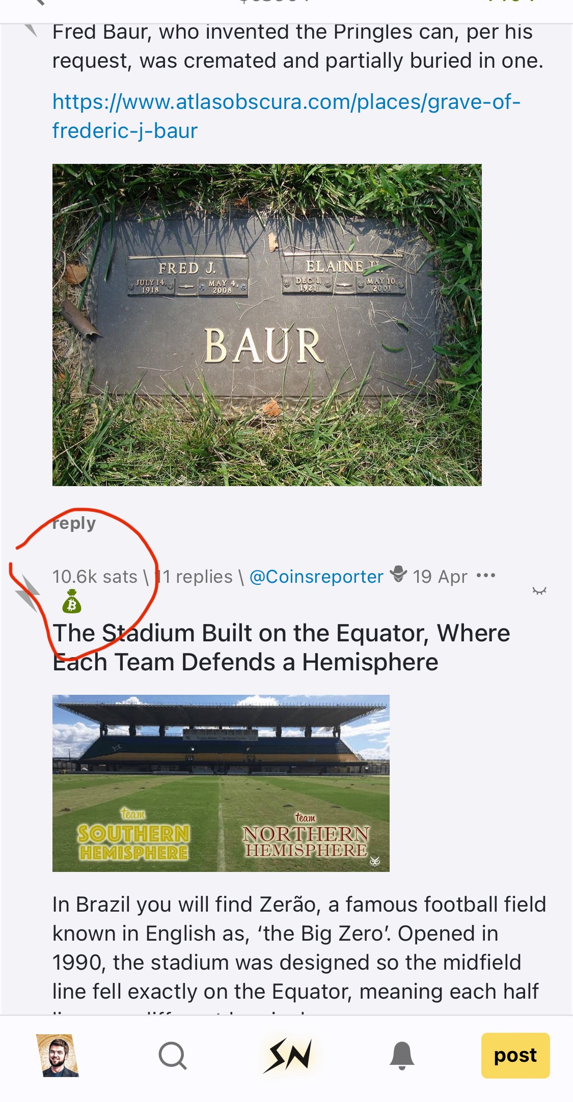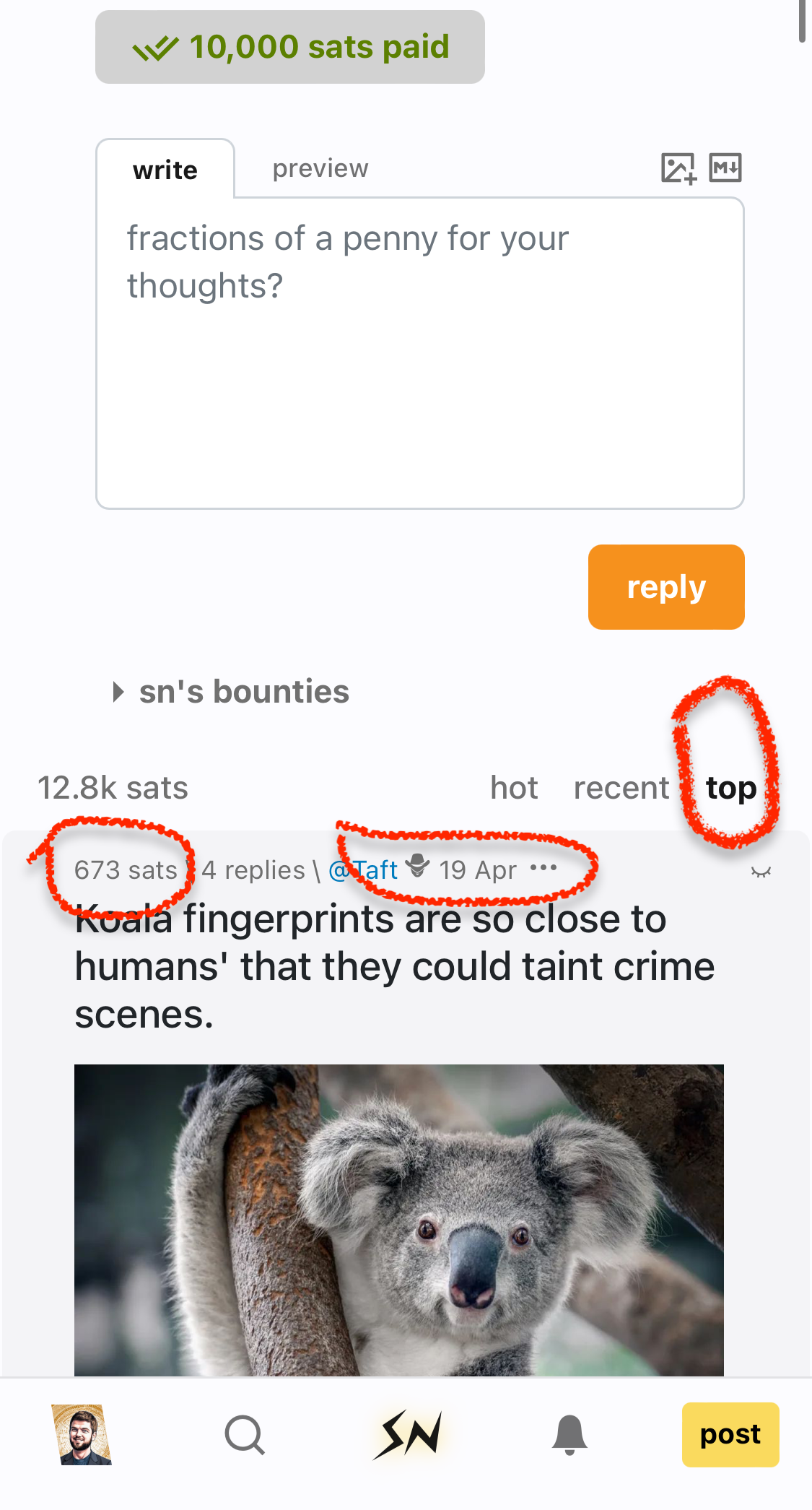 10k sats were sent to @Coinsreporter's post, even though it was way down in the "top posts ranking".