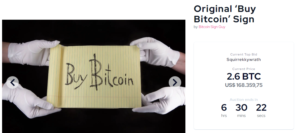 Did you guys see the auction for the 'Buy Bitcoin' sign? It's already in 2 btc mark. That's insane... What are your thoughts about it?