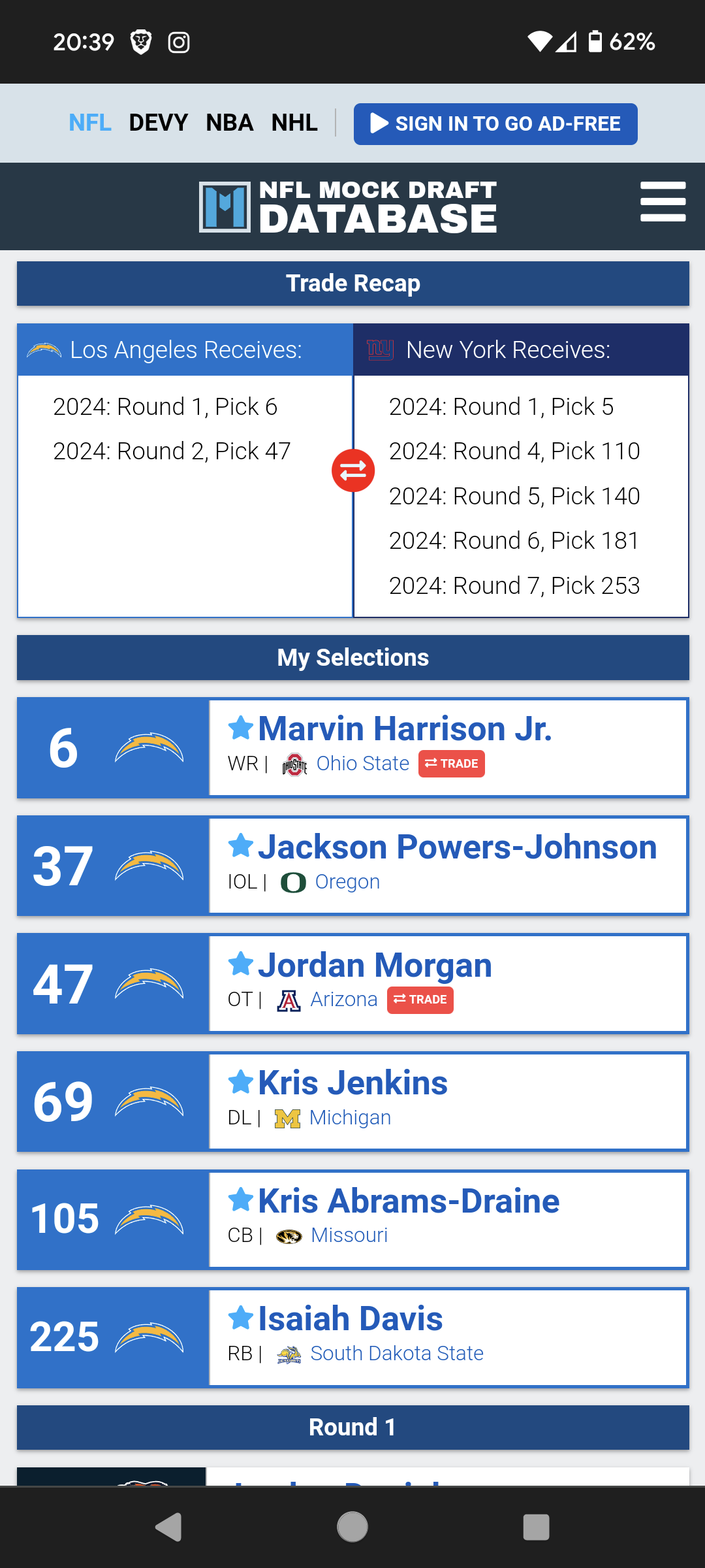 Mock Draft parameters: minimum 5 rounds. You can make one trade if you want but you can't trade any 2025 picks to move up.