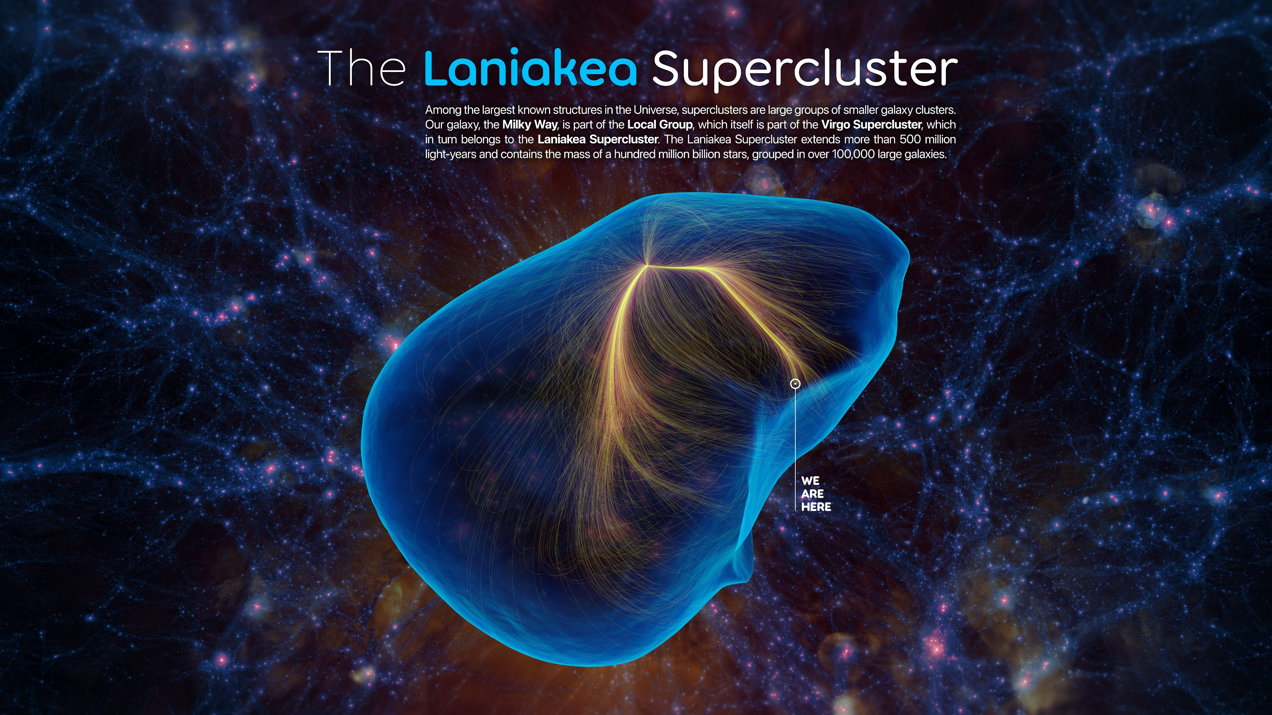Not long ago, I learned that our galaxy (the Milky Way) is part of a cluster called Laniakea. Laniakea is made up of over 100,000 galaxies and is over 500 million light-years across.