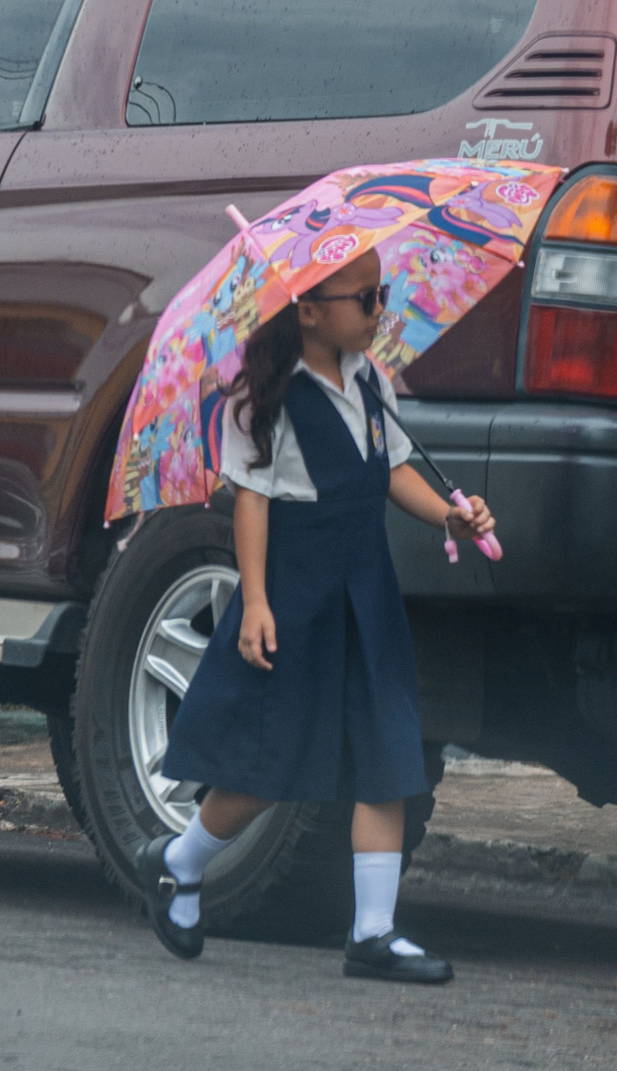 In this photo I was going to photograph the lady who stood out a lot with her yellow shirt but out of nowhere, a girl carrying a huge pink umbrella enters the scene and the whole photo was filled with color!