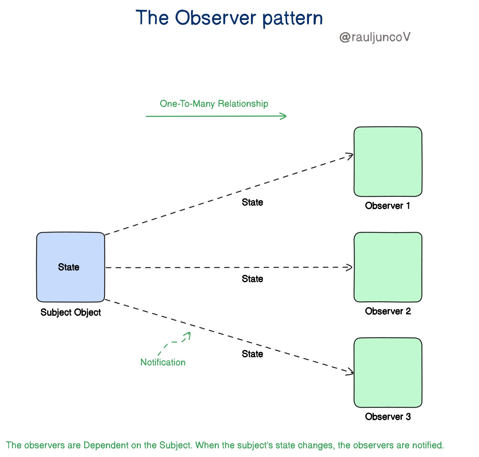 The real power of the observer lies in loosely coupled components. They can interact but typically have very little knowledge of each other.