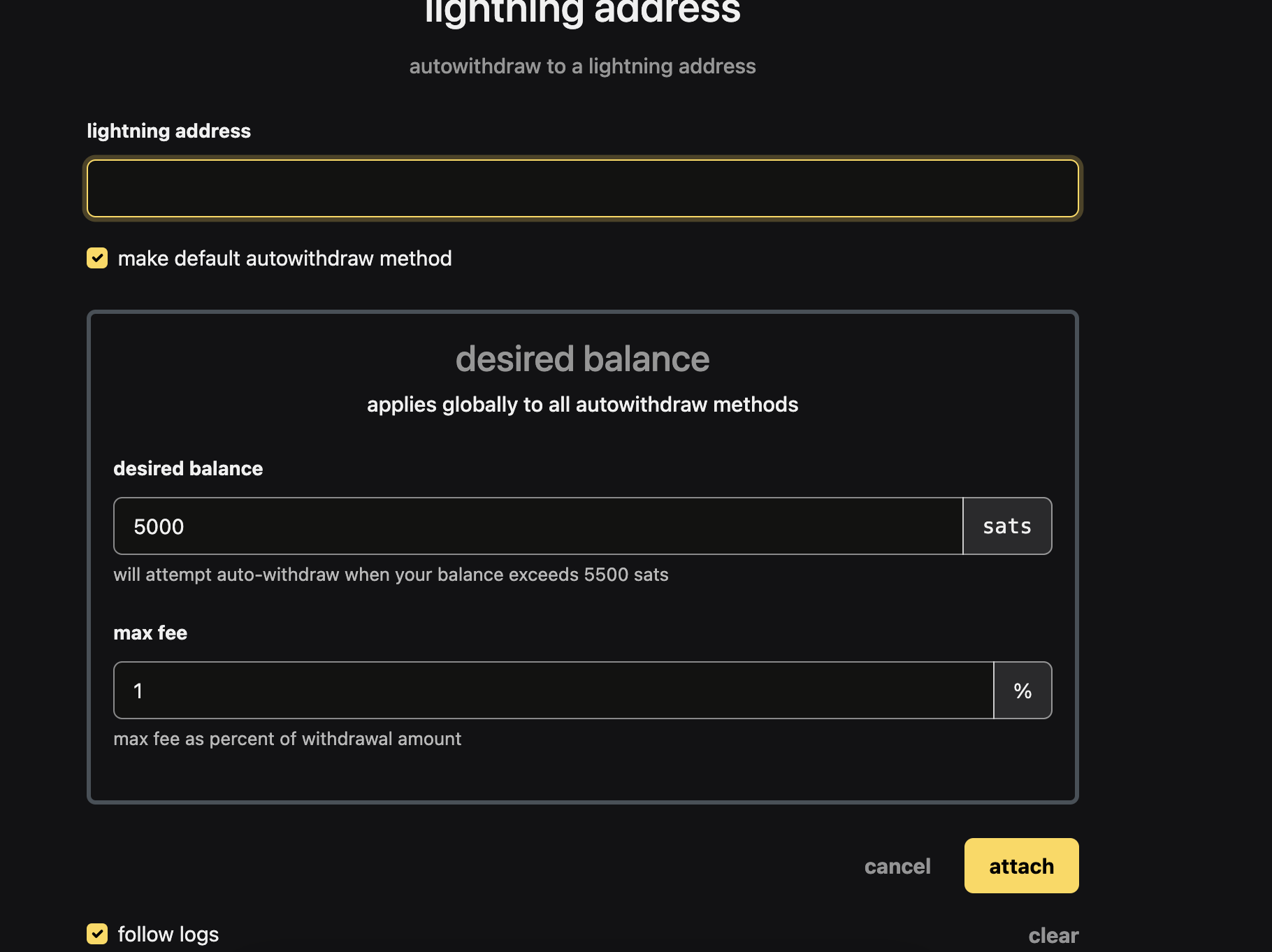 detachbutton on the configuration pageHere is what I see. Note, I removed my LN Addr from the input field just for privacy, but rest assured, it is actually configured