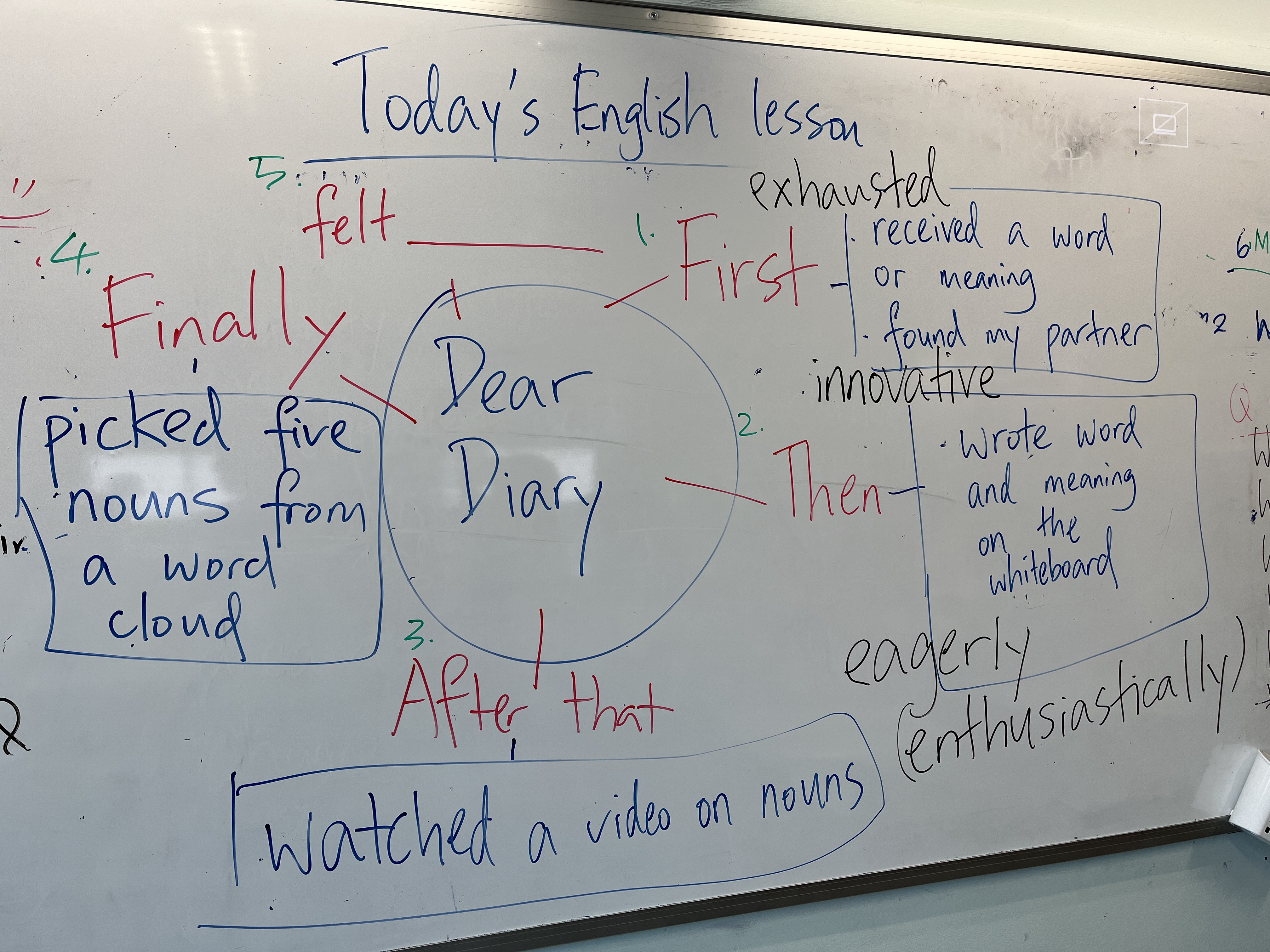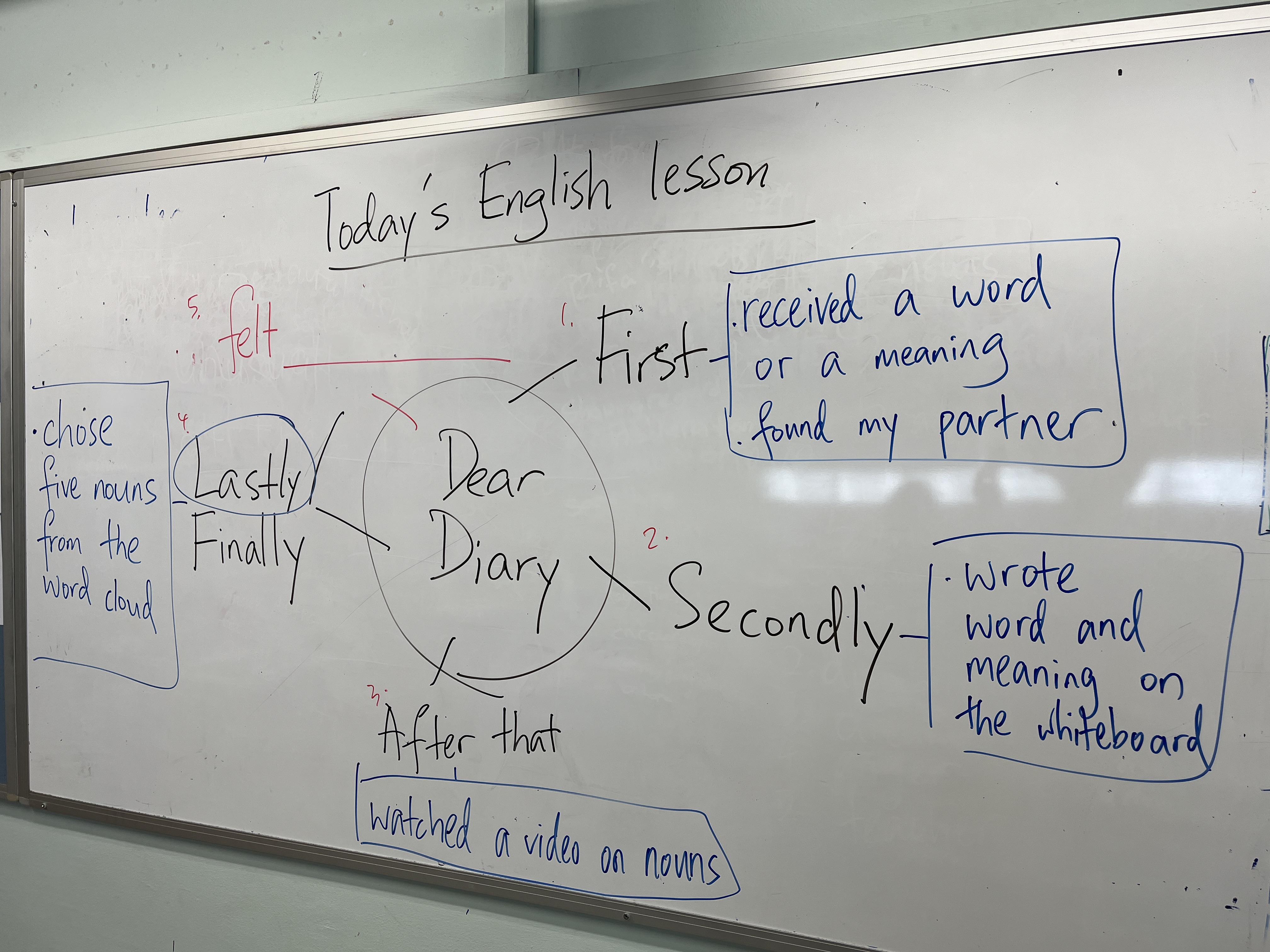 Monday was a hectic day, but I did have 20 mins to scramble around. I was adamant to plan an experiential lesson for the first period so that I could teach my students to incorporate connectors of sequence during the second period.