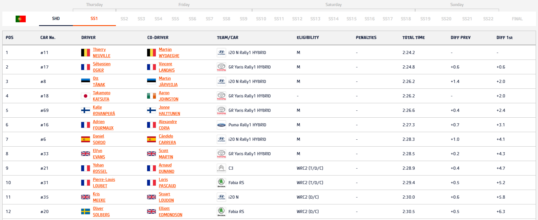 The World Rally Championship has already kicked off and the air is already thick with the smell of burning rubber and dust. After the special stage and shakedown, the standings are as follows.