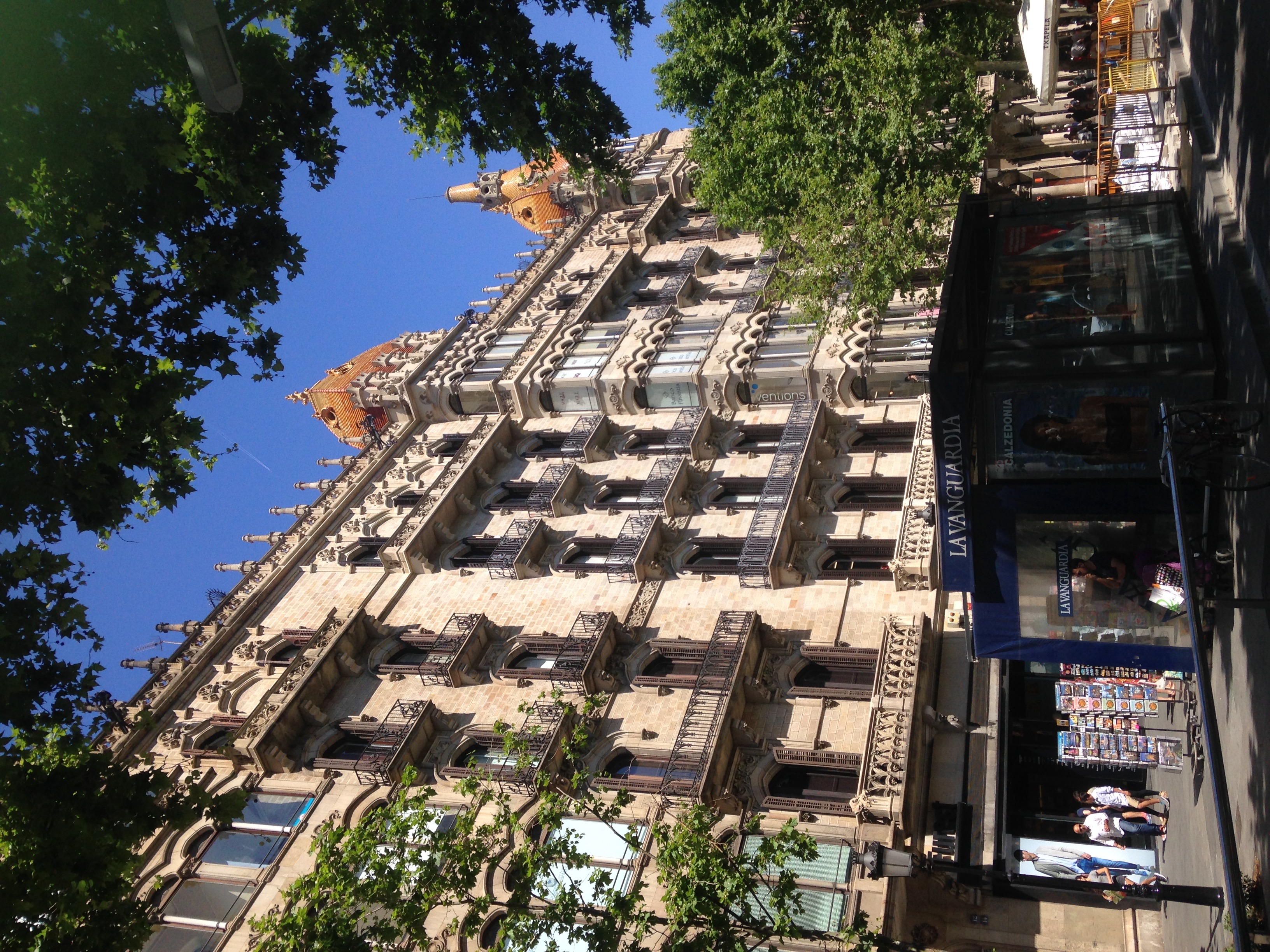 Walking down a Spanish street, enjoying the open air and space, being struck by how the leaves complemented the architecture
