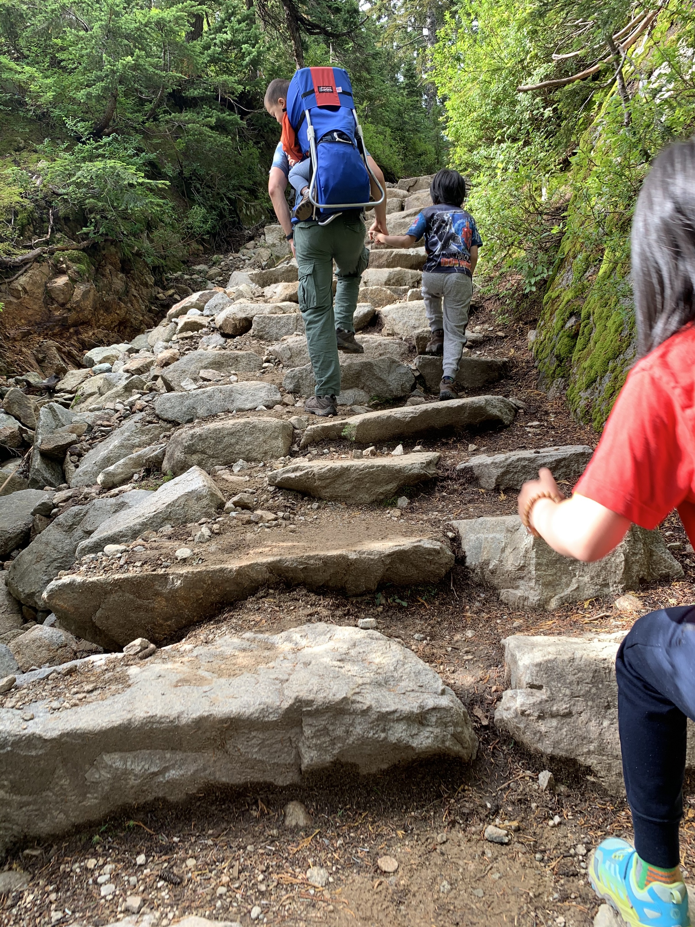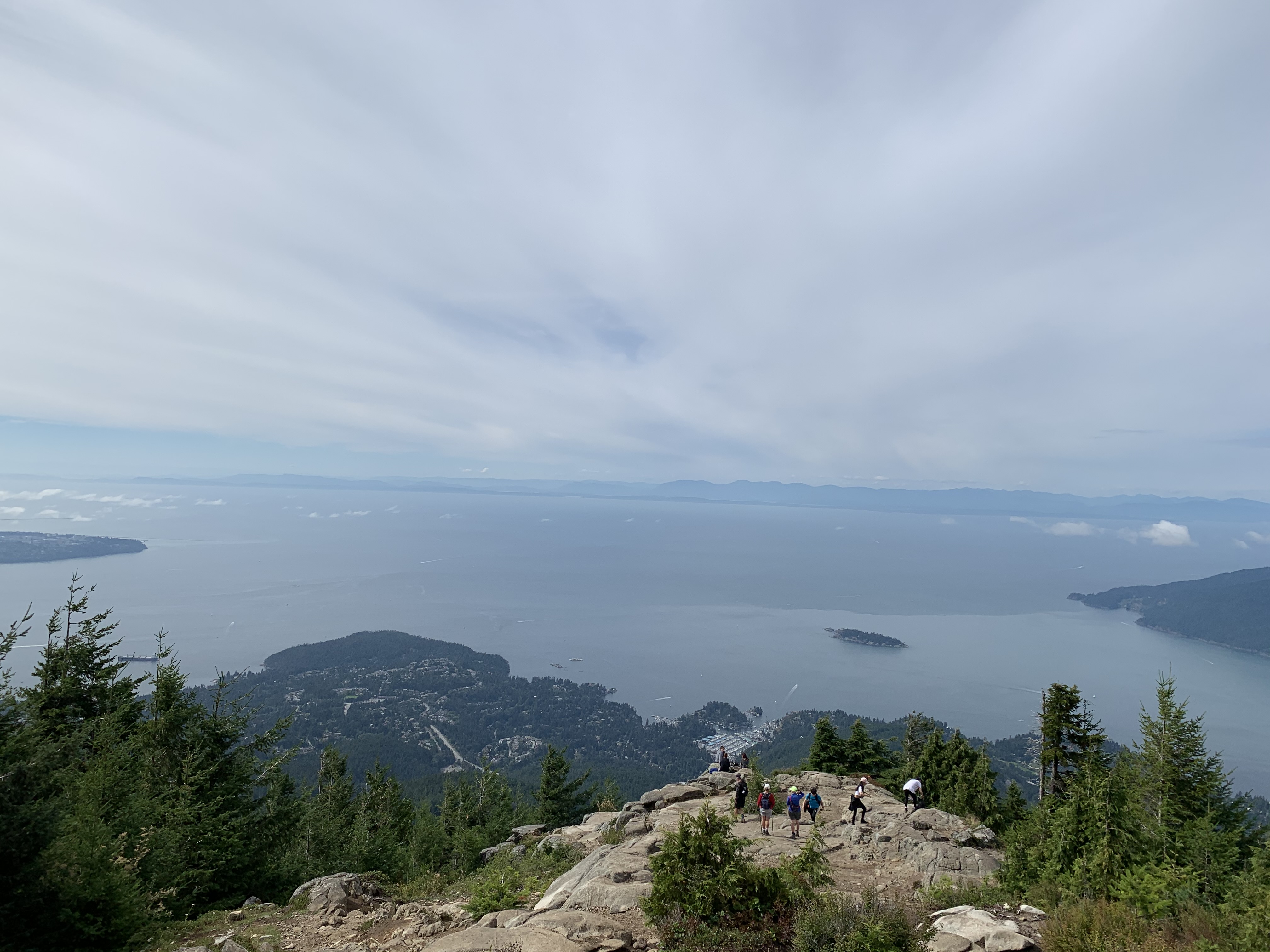 I eventually went to Eagle Bluffs again with my family in the summer of 2020. This time, I took them on the less difficult route that starts from the Cypress Mountain resort. The trail is also an out an back trail totaling 8km long and 440m elevation gain. The trail, like most north western Canadian trails, traverses through forests, passing by tall and thick trees. The trail also continues on a steady incline and passes by a few lakes. The trail eventually narrows and do get muddy if it had rained in the few days prior. After about 4km of hiking, there emerges a clearing of a rocky bluff, which is the viewpoint at Eagle Bluffs. The viewpoint boasts beautiful views of Vancouver and surrounding cities to the south, and Howe Sound islands and Sunshine Coast to the west.