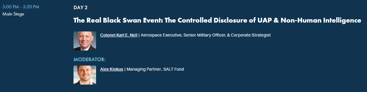 Karl Nell has replaced[1] original speaker David Grusch, yes this David Grusch: