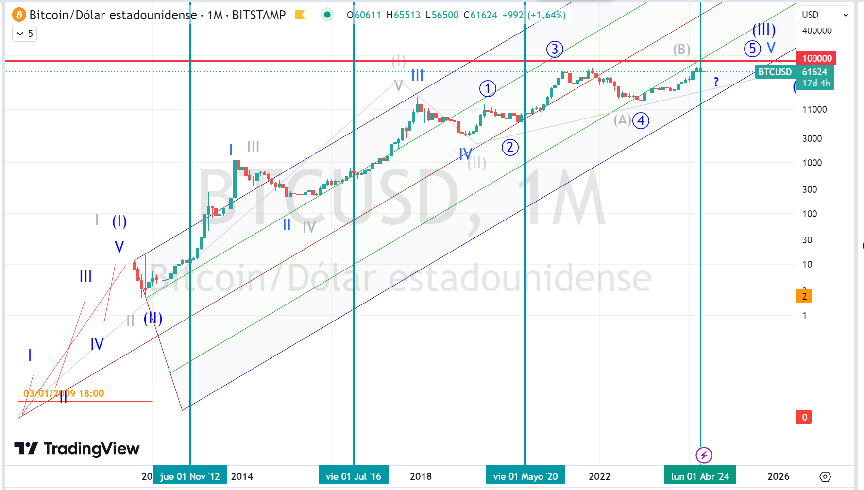 On the other hand, we have Wave 4 as a Support Zone that corresponds to the maximum and minimum of wave 4 of the previous degree. At this moment we are going through the last stage of the Supercycle Grade, Wave (III), the previous grade was Wave IV whose maximum and minimum was: $19,666 and $3122, as a second reference the Wave ((4)) of the Primary Grade with maximums and minimums of $69,000 and 17,170.