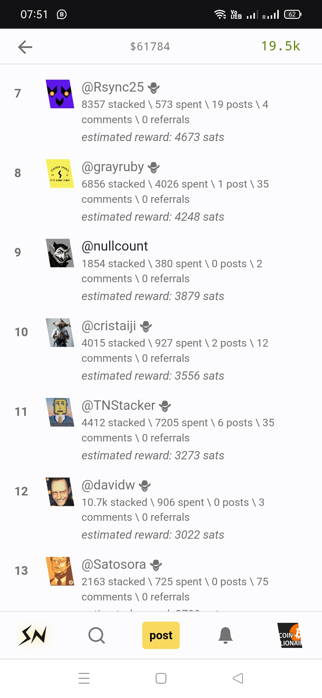 Please see screenshot below. Position of two Stackers @nullcount and @davidw .