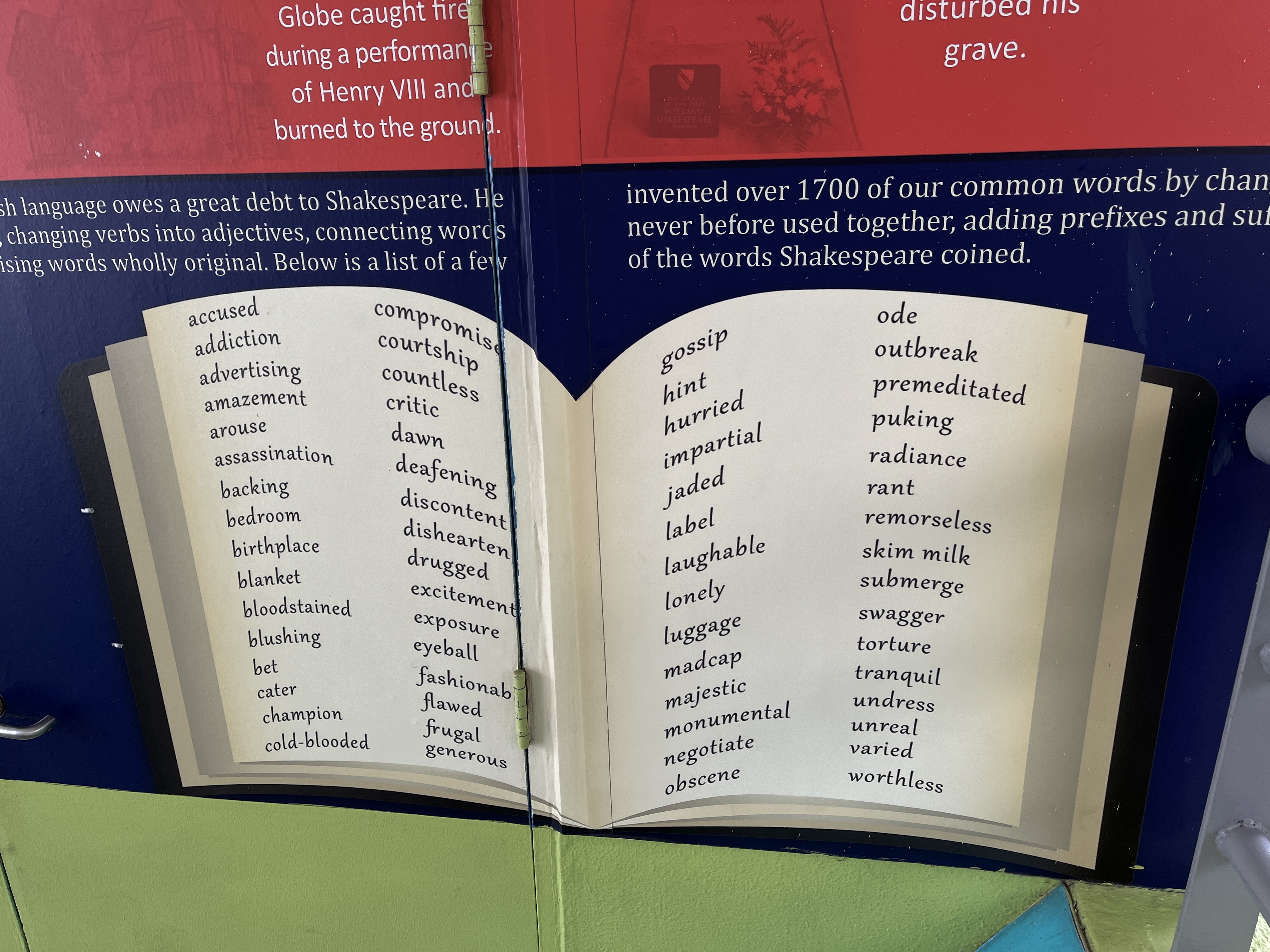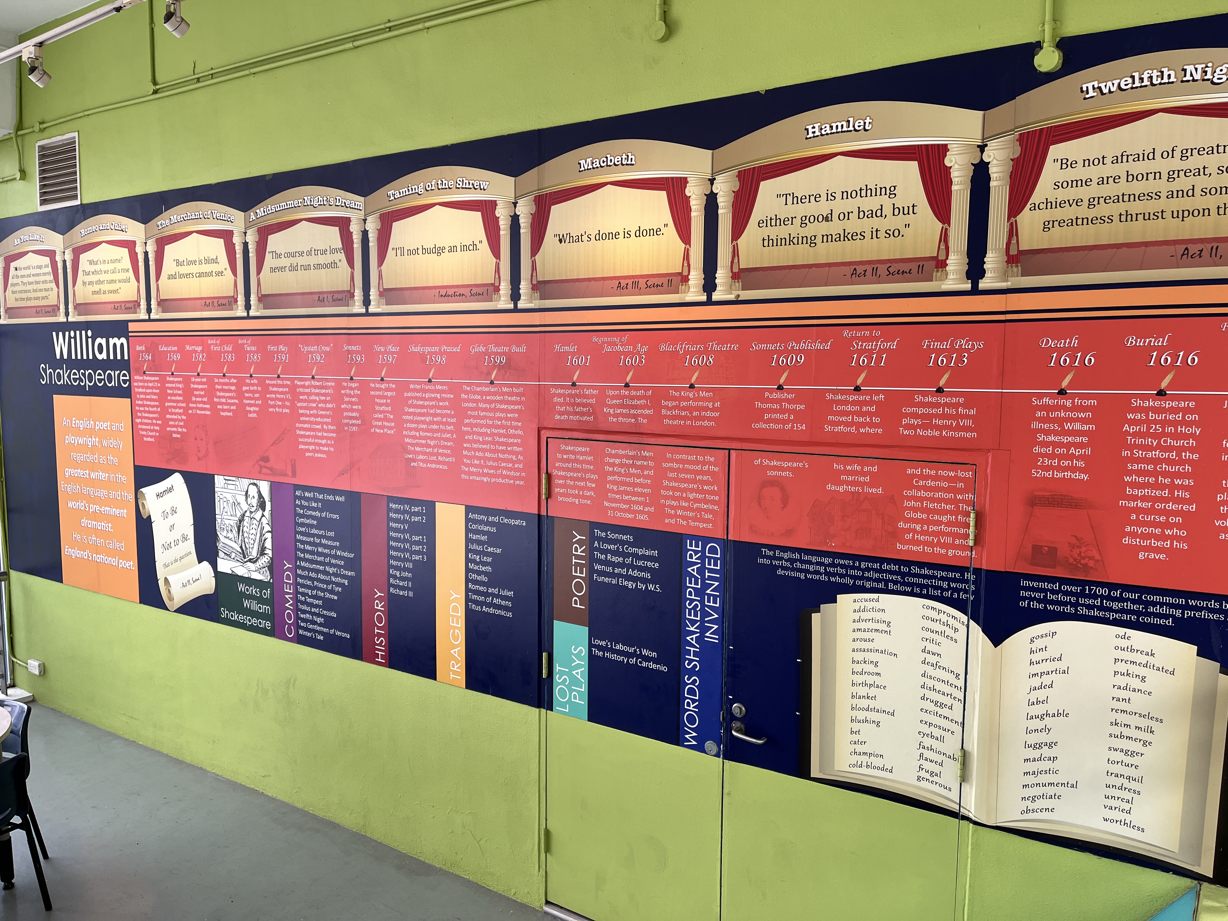 I took these pictures when I went to another school for a lesson demonstration. You can sense that I’m fascinated by the contributions Shakespeare made to the English language.