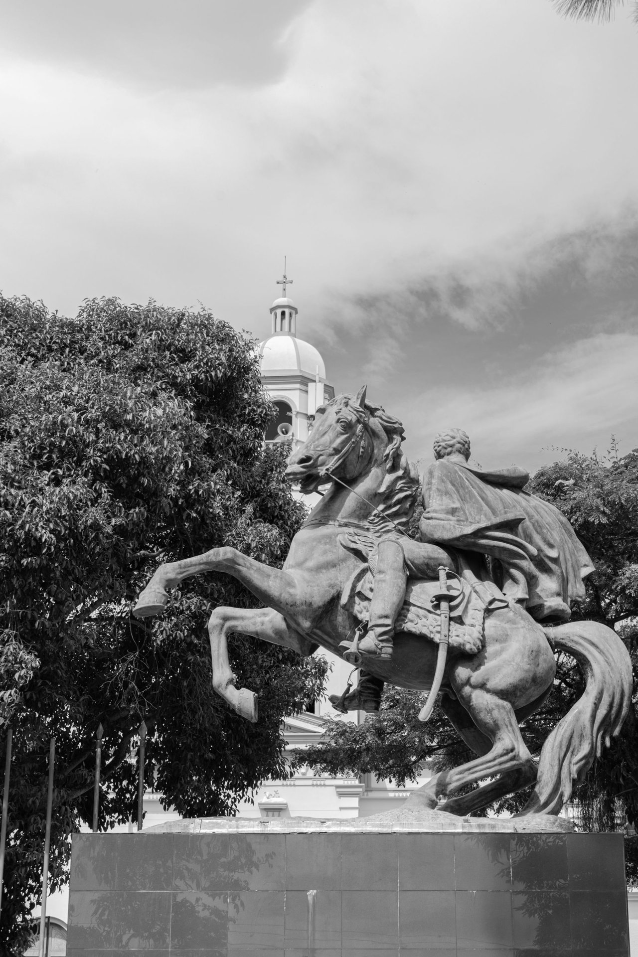 In one of the towns along the way there was a large square and its church caught my attention, which had a gigantic statue of Simon Bolivar.