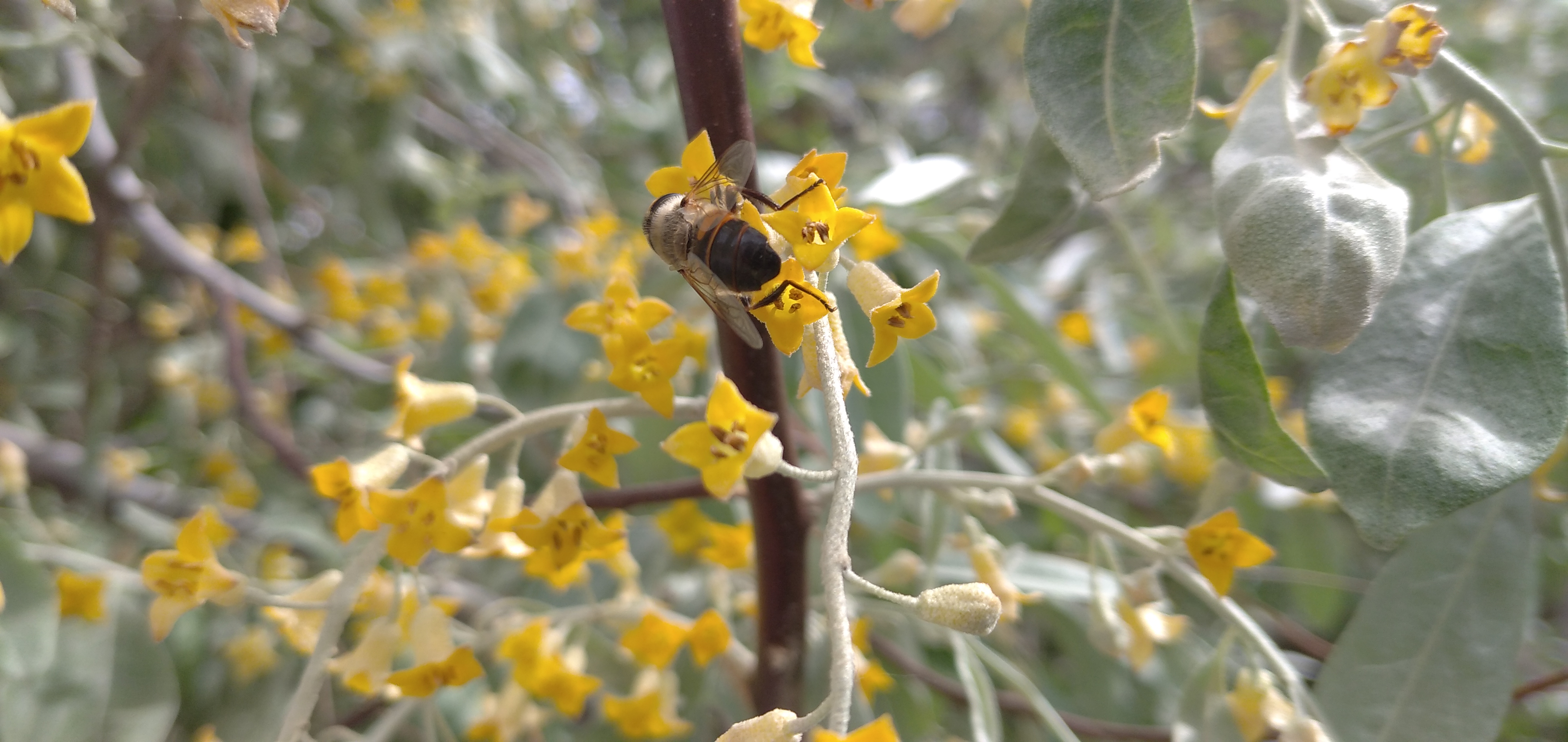 The oleaster tree flower and its worker. I took the photo today.