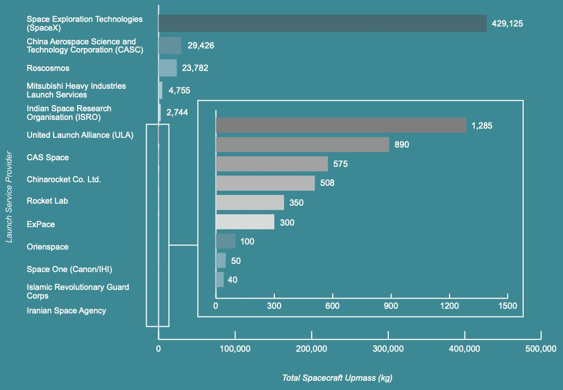 87% of the world's tonnage to orbit in Q1