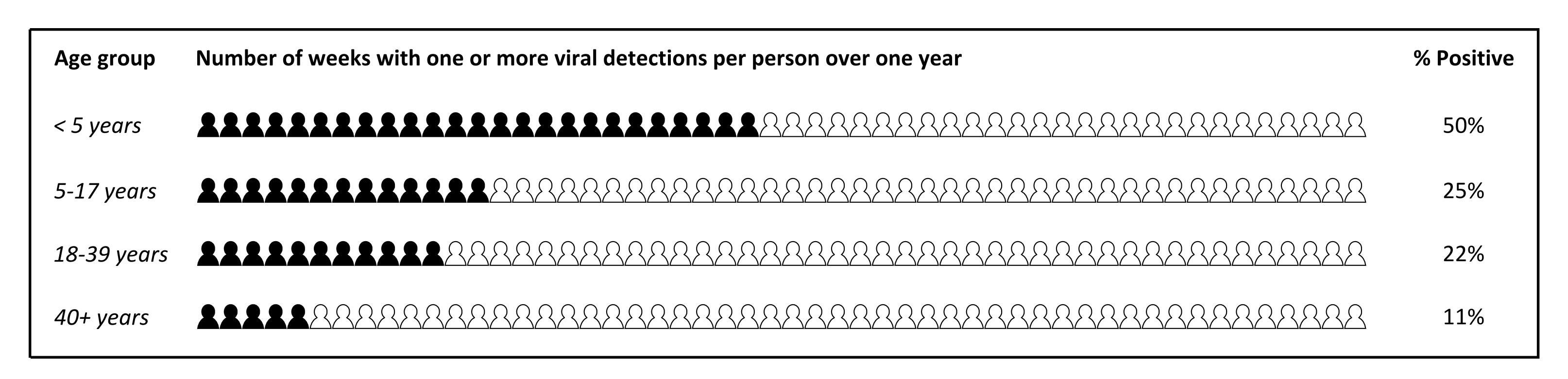 People living in childless households were infected with viruses on average 3-4 weeks during the year. In households with one child, that number jumped to 18 weeks, and for those with six children, there was virus in the household for up to 45 weeks out of the year.