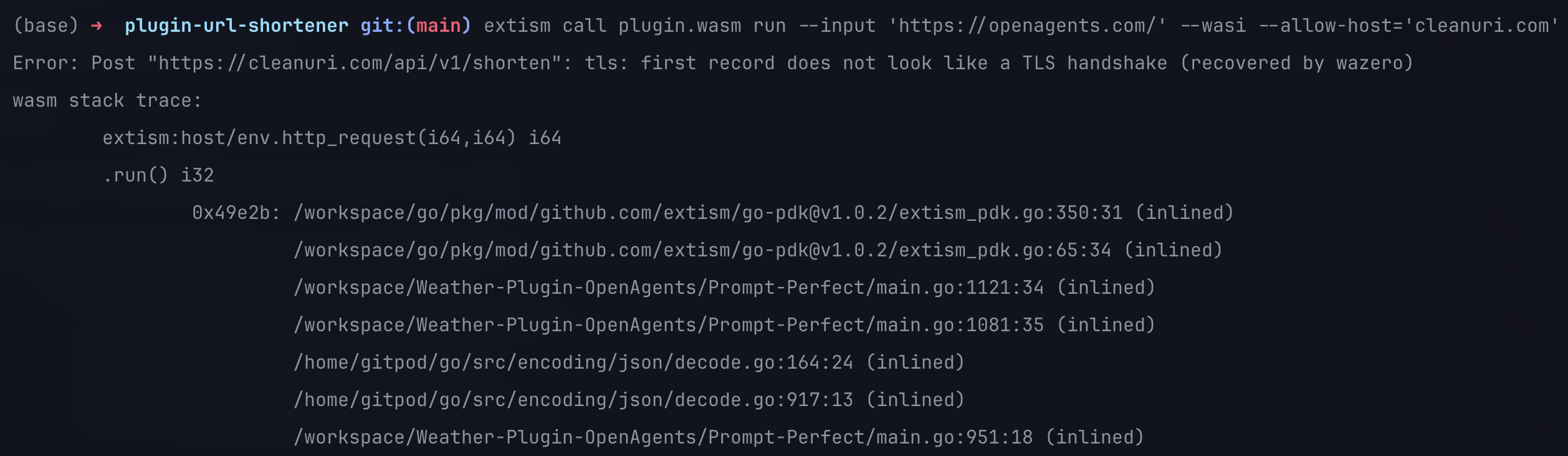 $ extism call plugin.wasm run --input 'https://openagents.com/' --wasi --allow-host='cleanuri.com'