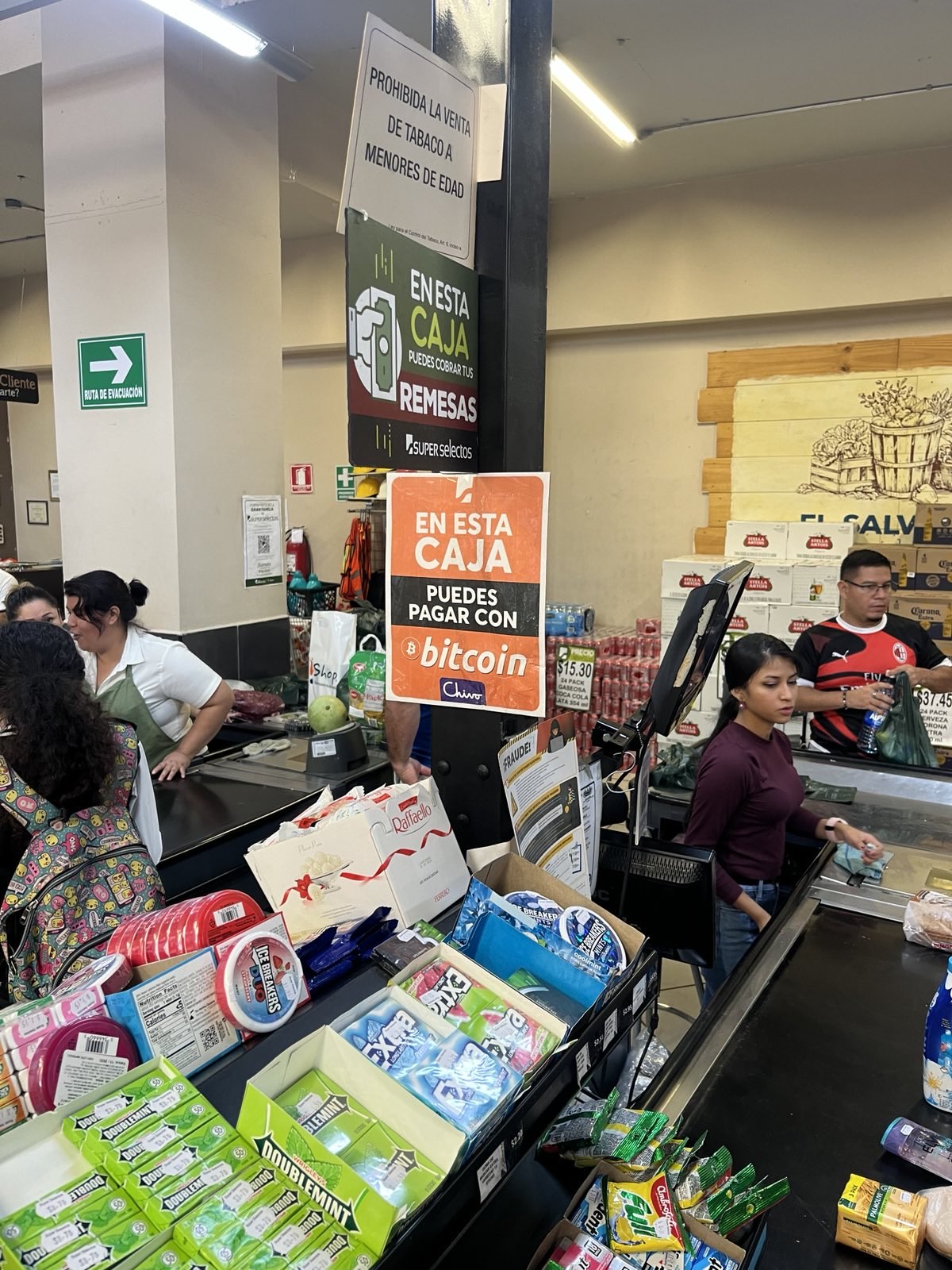 When paying with Bitcoin at El Salvador's largest supermarket chain, first find the designated checkout lane.