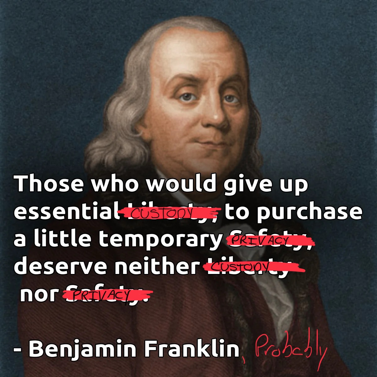 Even though I have been very outspoken on what I view as a pointless venture, I am not here to stop anyone from building what they enjoy in the space. Devs working on ecash are free to do so as of course I have no control over them, though I fear that time spent on improving custodians is time that we will not get back. It's clear that the US gov and many in the EU are seeking to ramp up their attacks on Bitcoin privacy and self-custody, and our time to build tools to route around them is growing shorter and shorter.