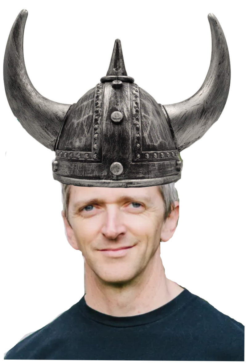 That's why I put the Viking helmet on him...this way, he will blend right in.