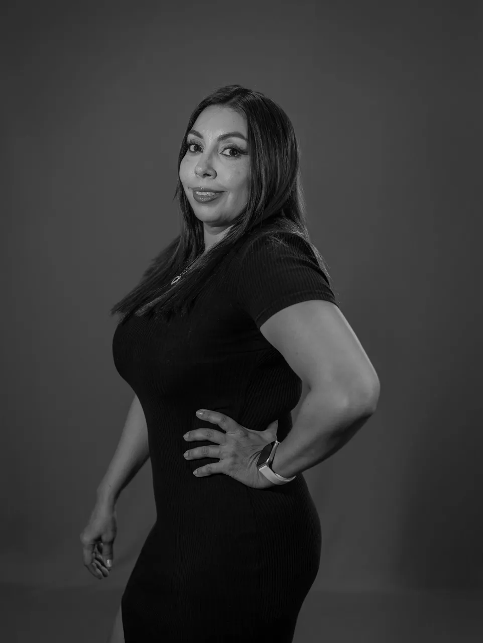 The model wore an elegant black dress that highlighted the curves of her body, creating a contrast with the gray background. Since she is not a professional model, I dedicated myself to guiding her in each pose during the session. These practices have also allowed me to develop my ability to direct the models and create an atmosphere of trust and collaboration in the photo sessions.