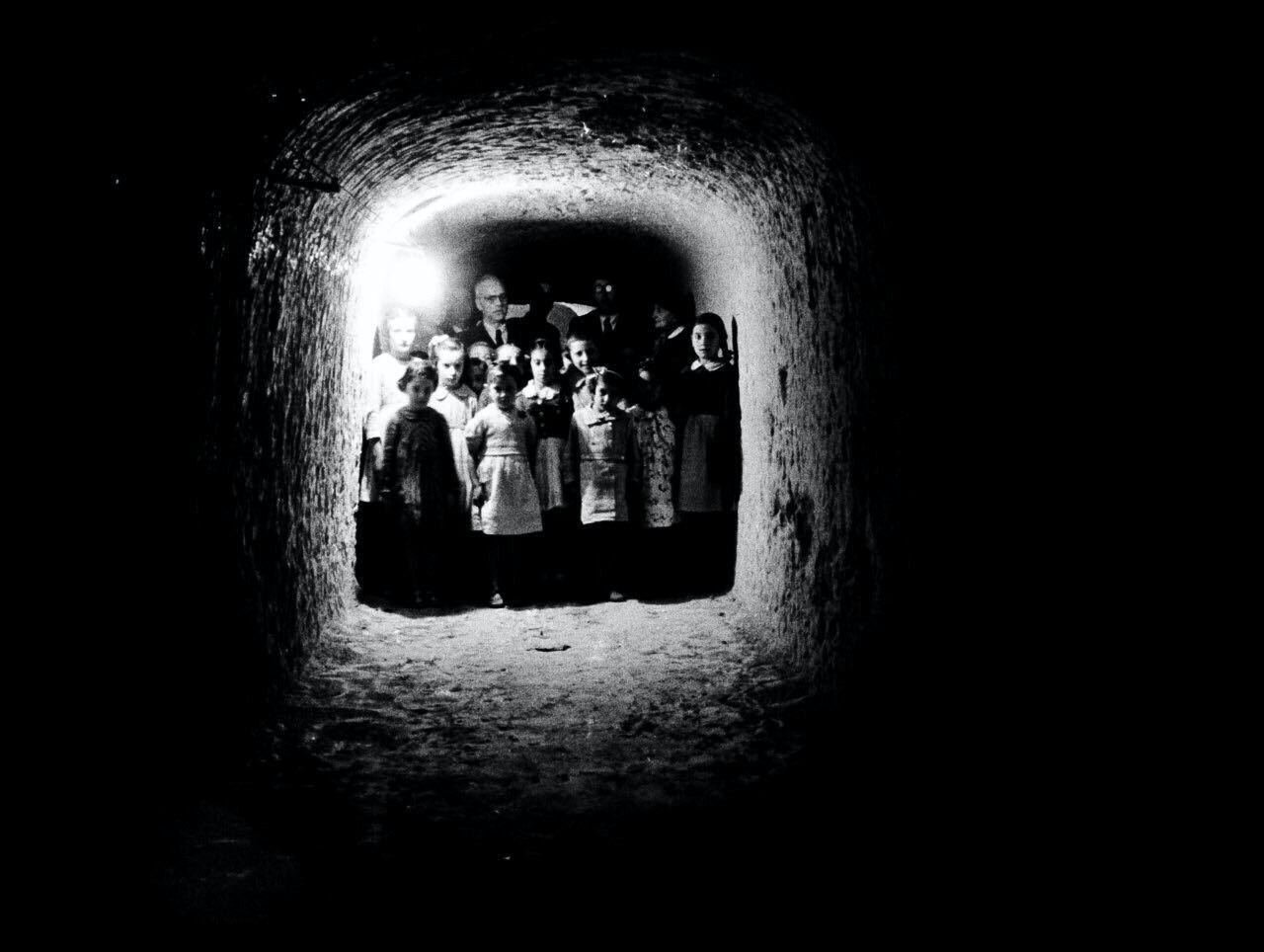 4 - Children sheltered in an underground refuge during bombings. Spain, 1938
