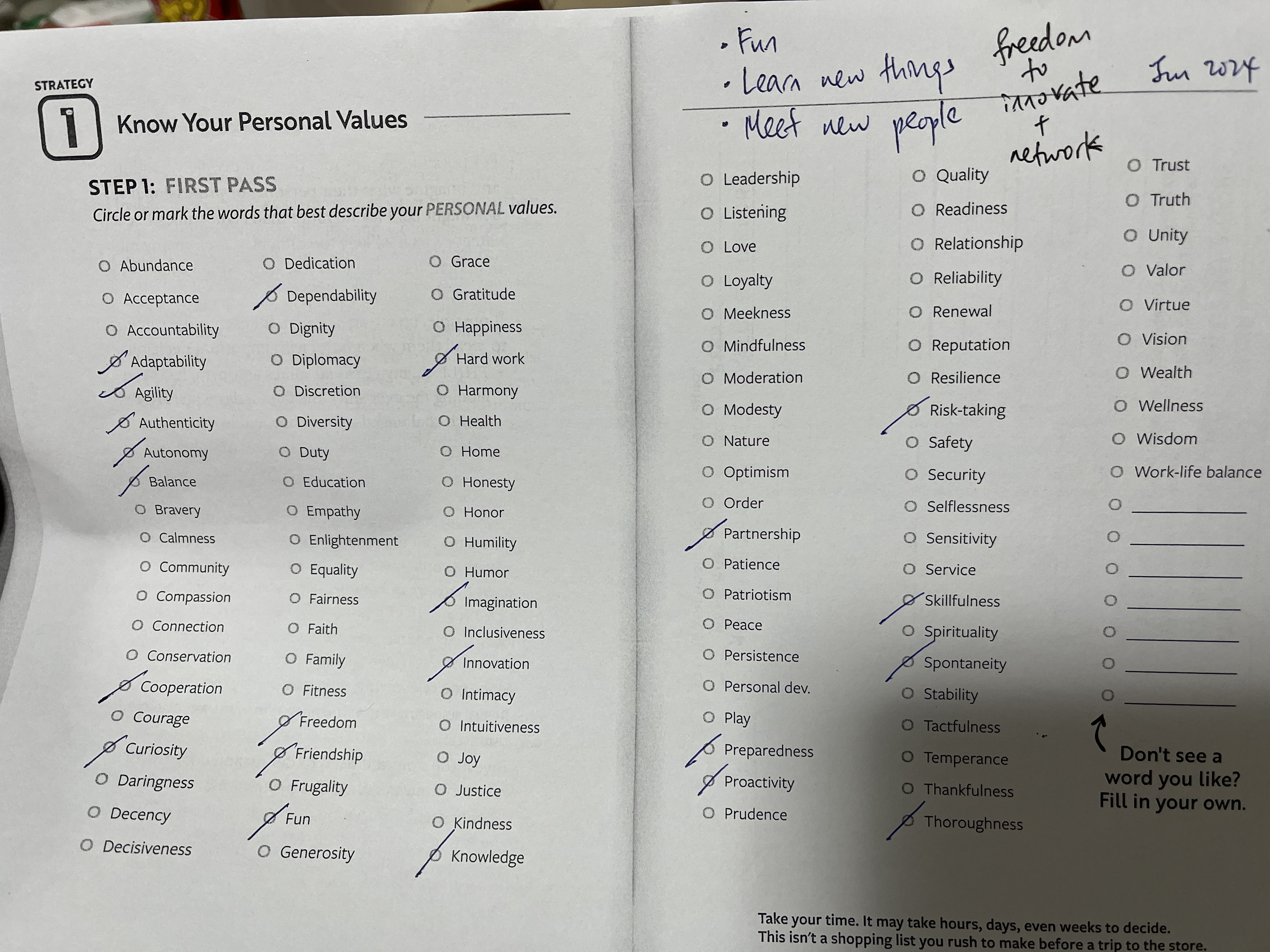 Fun has got to rank highest in my personal values. Although I come across as an intellectual, I’m actually rather playful and like to inject fun into everything I do. I think if something is fun, it makes it more emotionally appealing, so people will have a more lasting impression. I am also enterprising. I pride myself in being an early adopter of novel technologies. I like to try new ways of doing things to see if I can achieve different or more effective results. It is linked to my value of fun because I find taking on new challenges fun. My last value is networking. I delight in meeting new people and cooperating with them on projects, Learning different points of view helps me identify my blind spots and sharpen my thinking. Not to mention how variety is the spice of life!