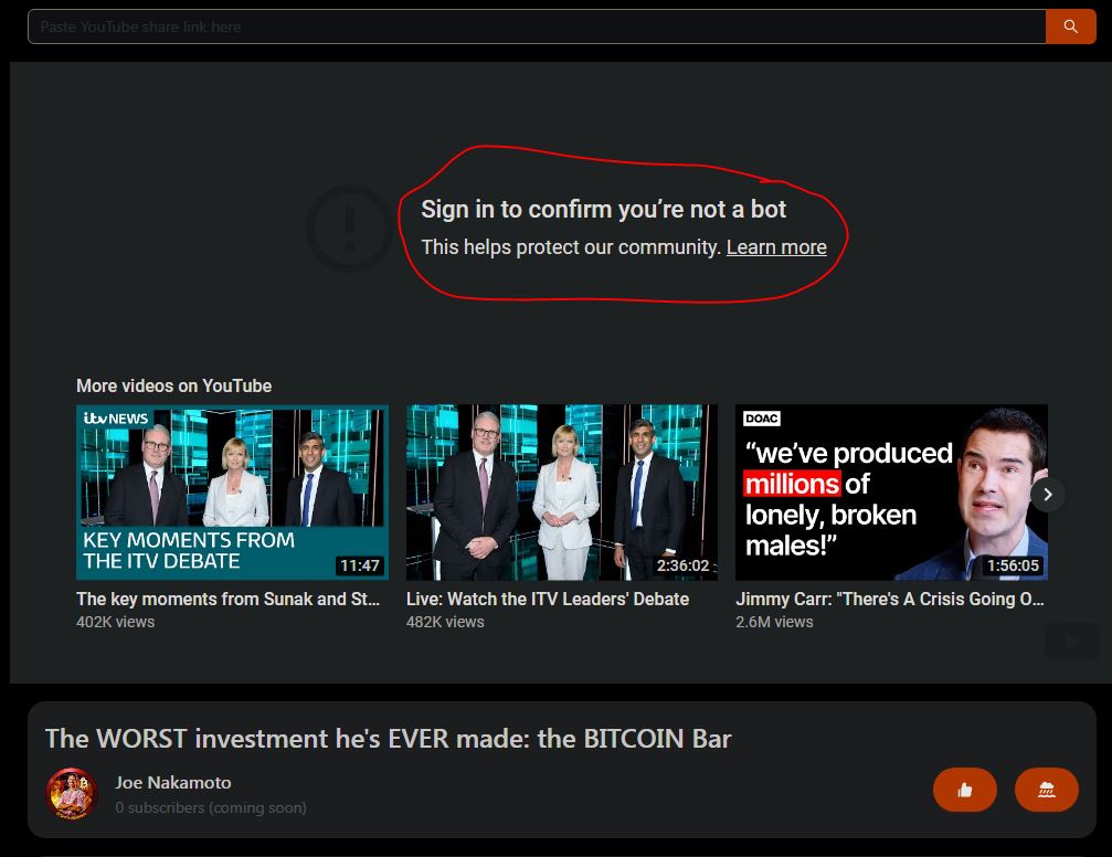 WE NEED TO REPLACE YOUTUBE, not keep using with tools on top of it. Also now YT is forcing viewers to login in order to see videos. No more anonymous views. So this storm.pub became useless anyways with these new YT rules.